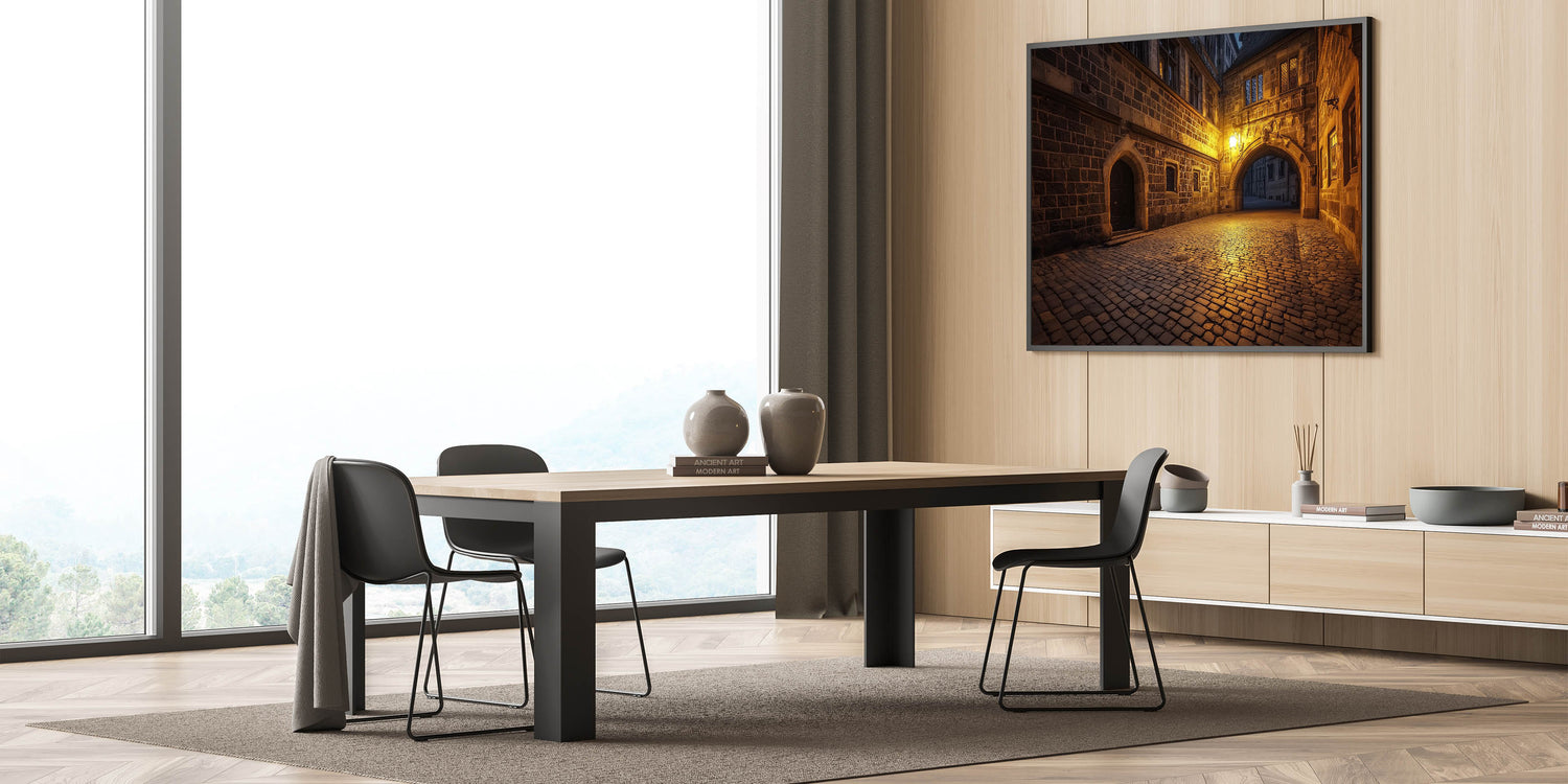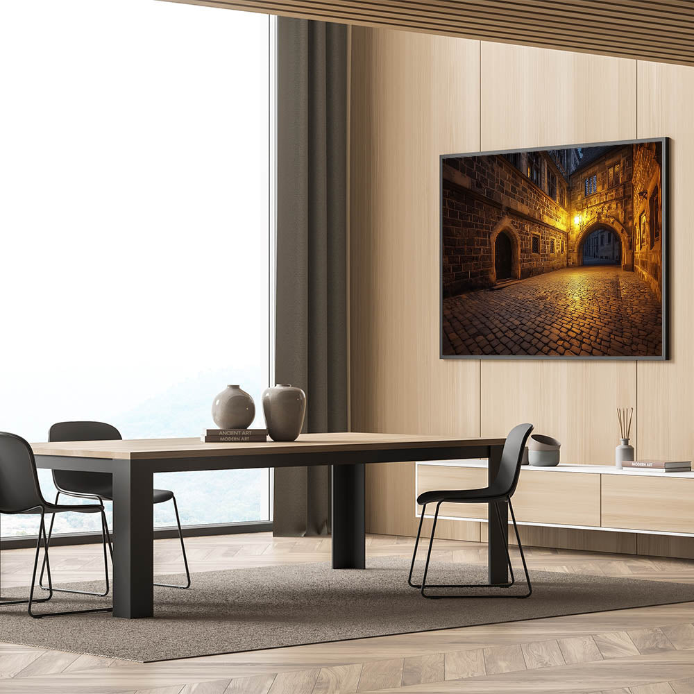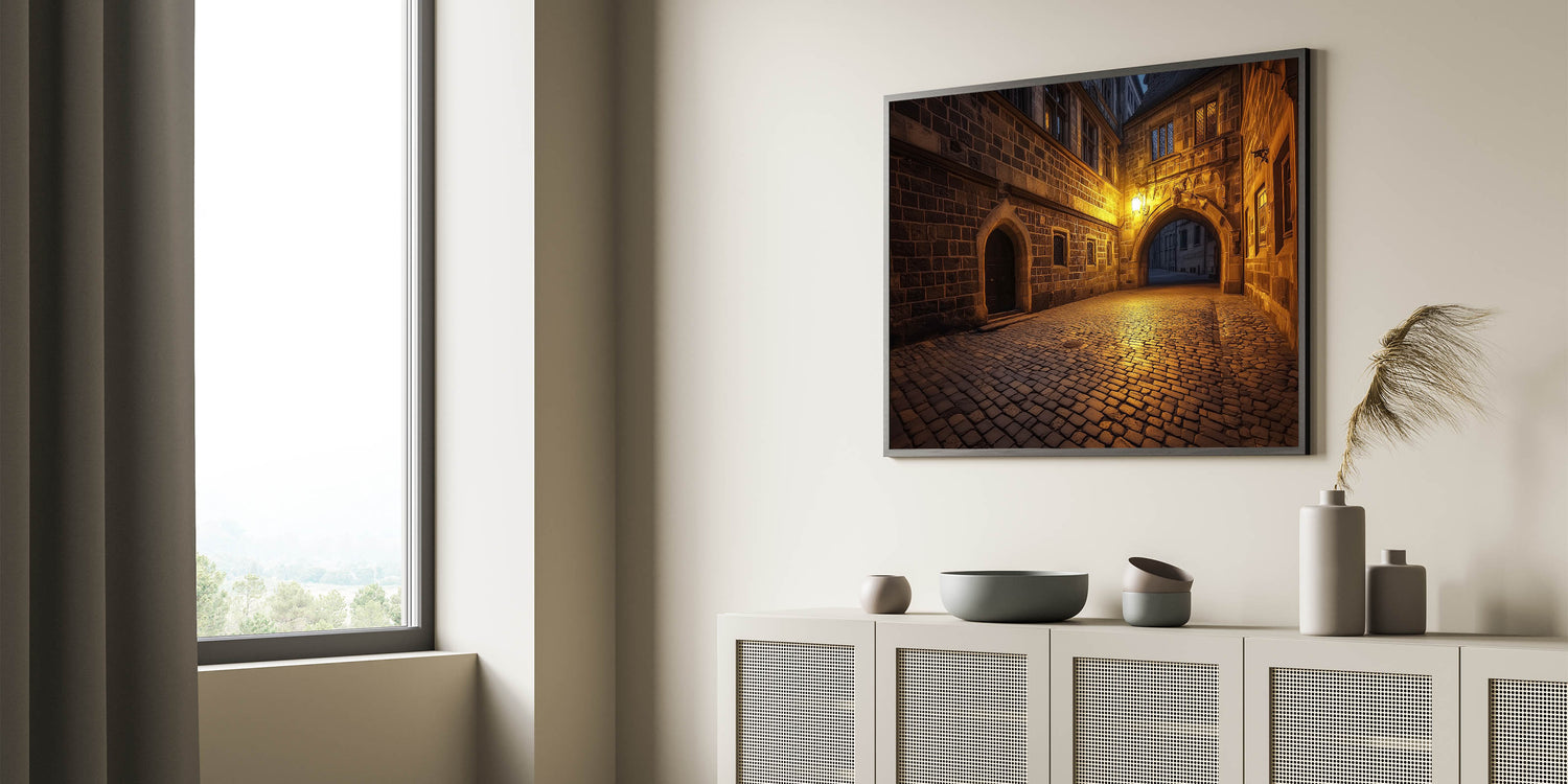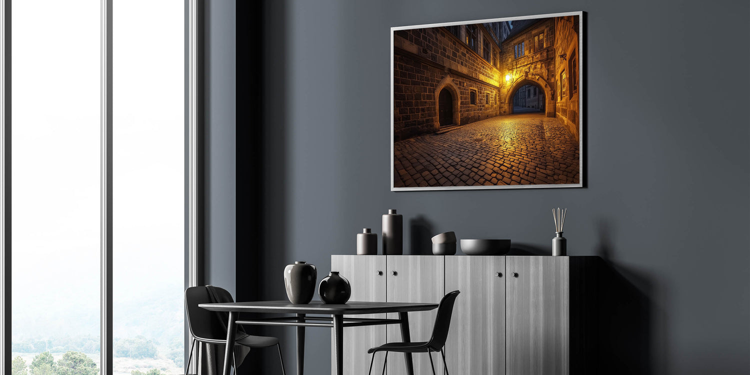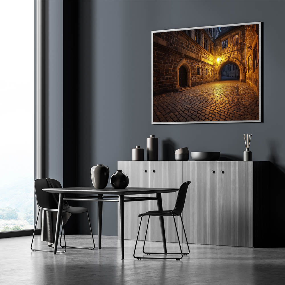 Let this piece transport you to a quiet castle street, where timeless craftsmanship meets the gentle glow of evening light. Available in multiple sizes and formats to complement your style and decor needs.