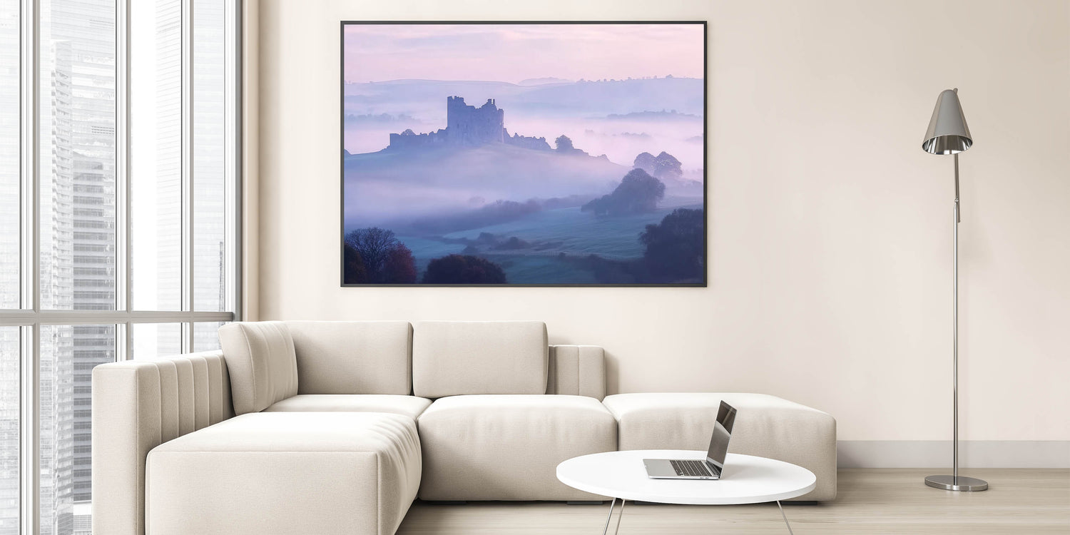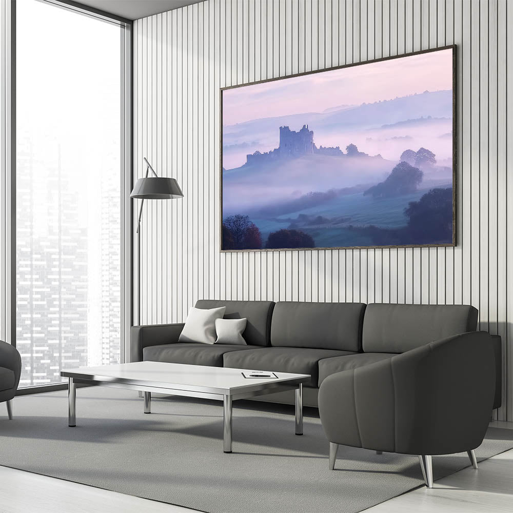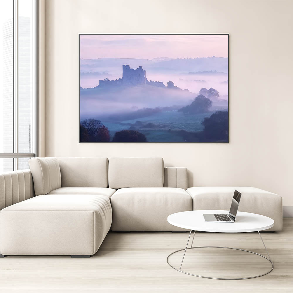 Immerse yourself in the ethereal beauty of this captivating misty castle landscape. This stunning artwork captures a medieval fortress gently cloaked in layers of mist, evoking a sense of mystery and timeless allure. Perfect for lovers of serene landscapes and historic castles, this piece creates an enchanting focal point for any room.