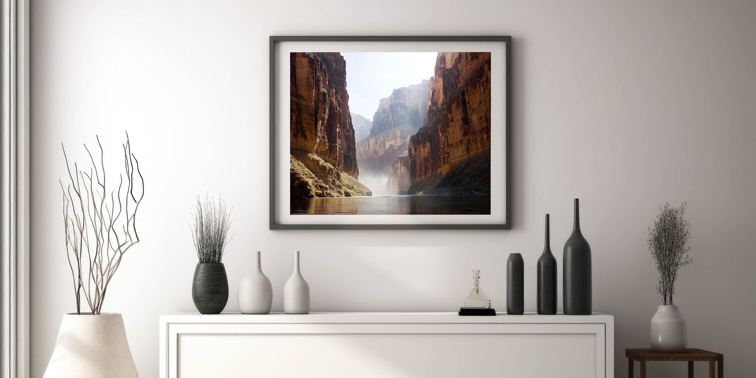 Elevate your decor with the timeless beauty of this canyon artwork. Whether placed in a living room, bedroom, or office, it adds a touch of tranquility and elegance to any space. Explore our collection today and bring captivating canyon views indoors.