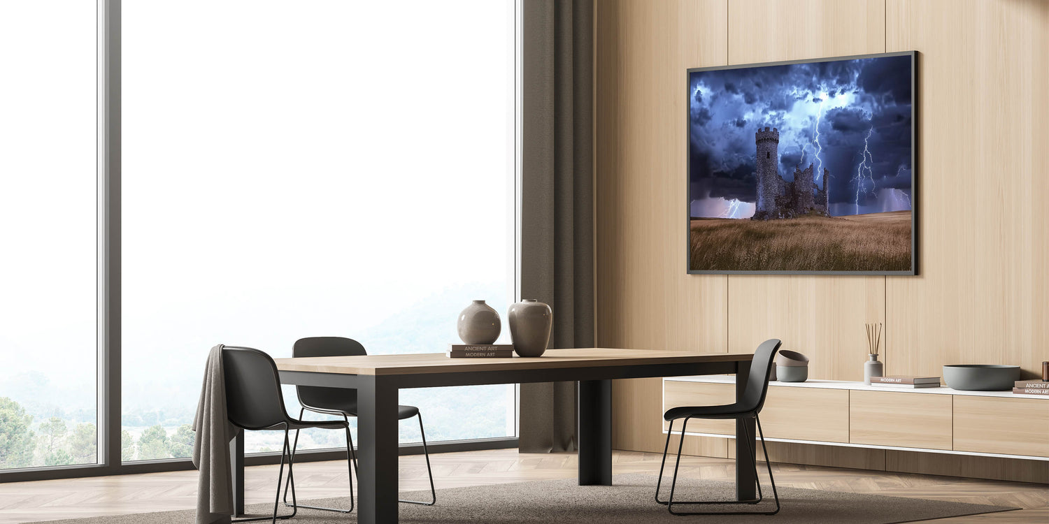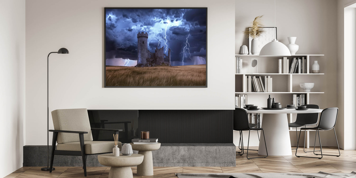 Transform your living room, office, or bedroom into a gallery of historic charm with this unique castle artwork. The combination of medieval architecture and stormy skies brings a timeless and dramatic aesthetic to your space. Add this unforgettable piece to your collection today!