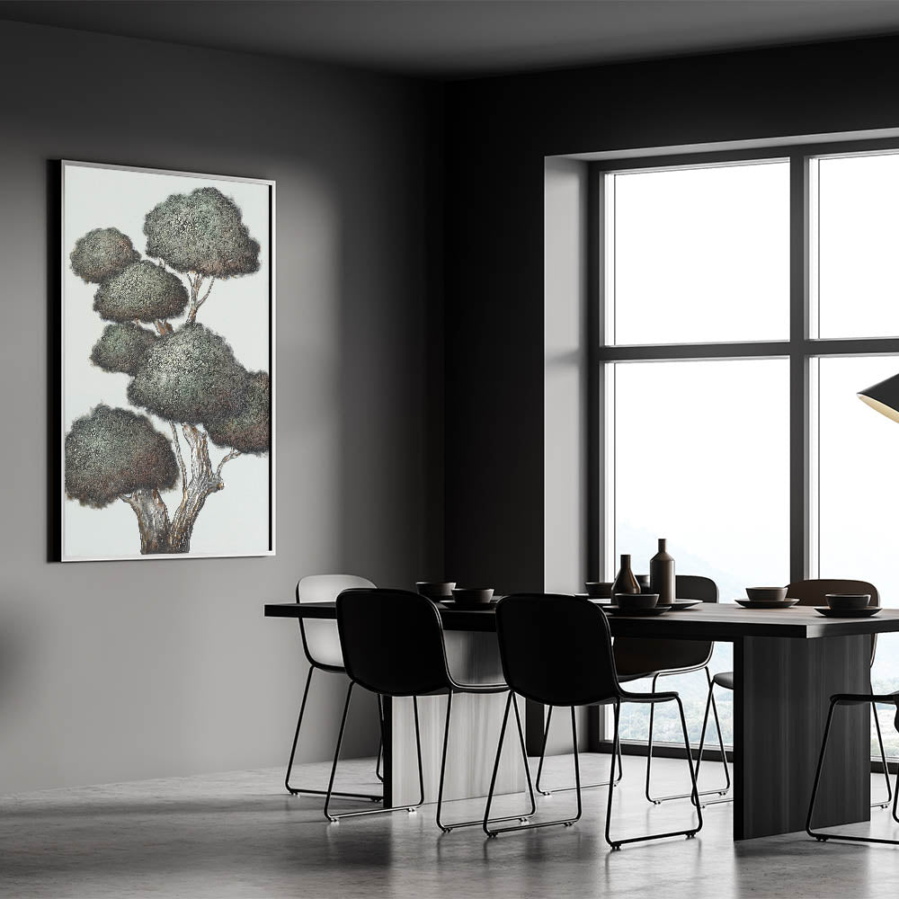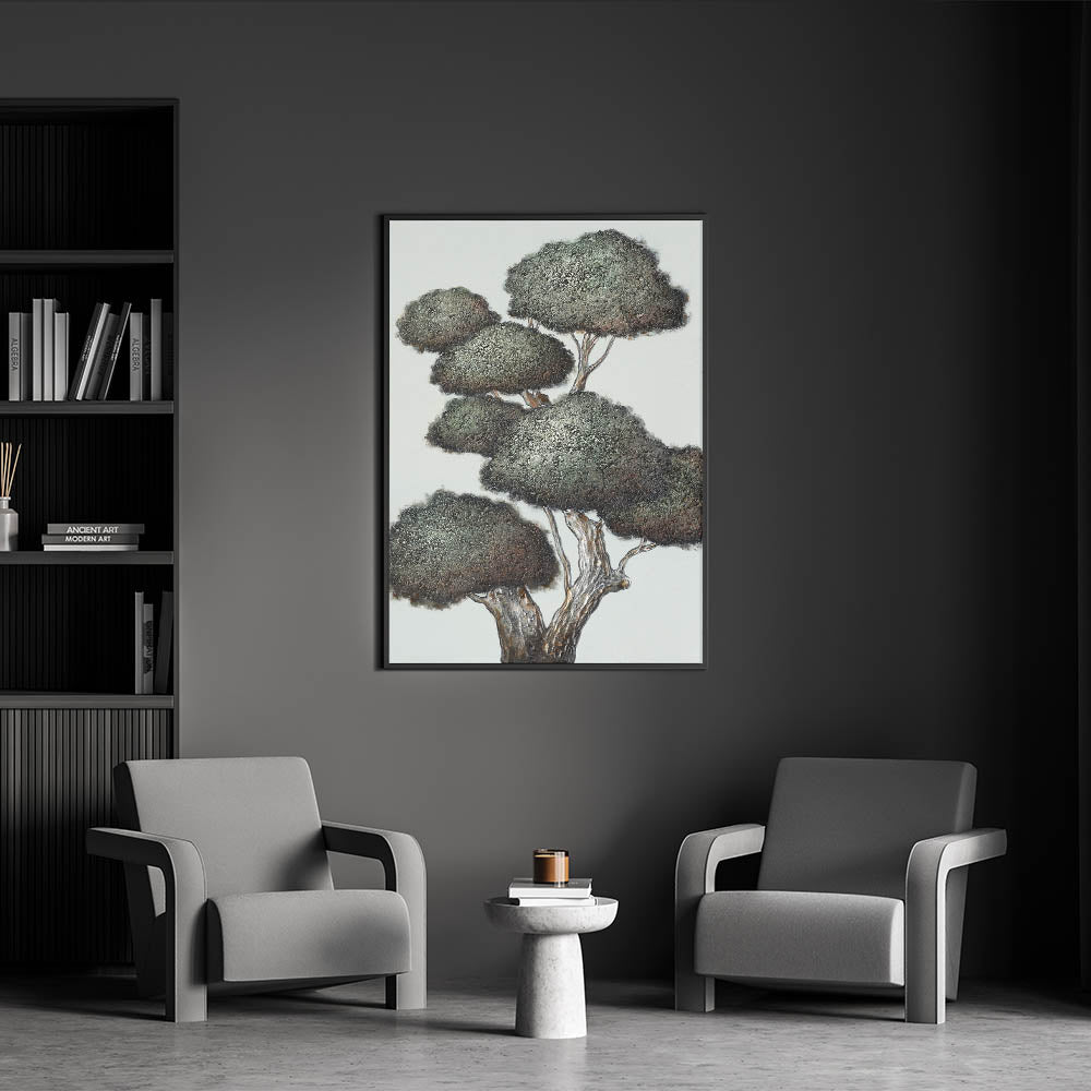Transform your space into a tranquil retreat with this Zen garden wall art, featuring a beautifully textured bonsai-inspired tree. The rich green and brown tones add depth and dimension, creating a serene landscape photography print that radiates peace and harmony. This nature-inspired artwork captures the elegance of sculpted trees, making it a perfect addition to homes, offices, or meditation spaces.