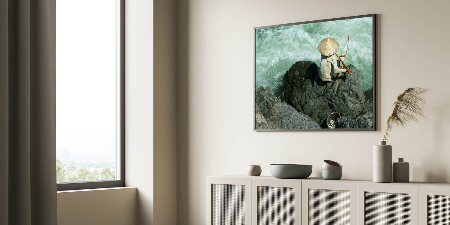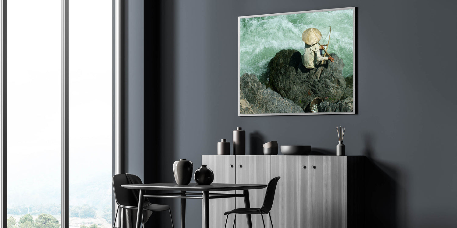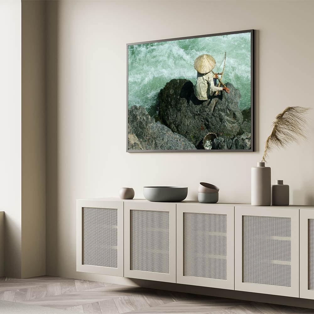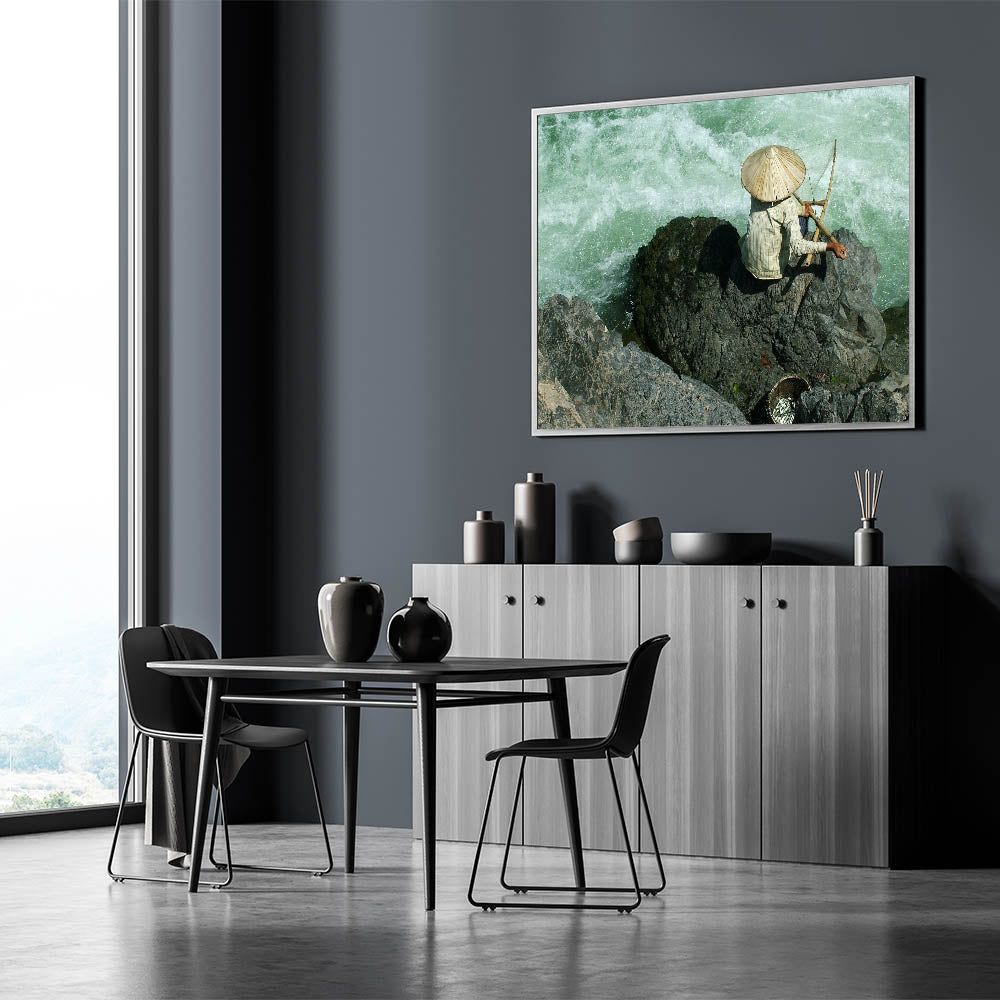 Discover the beauty of traditional Laos culture with this captivating piece of wall art, featuring a fisherman perched on rocky terrain by a vibrant river. The scene captures the essence of Laos' serene landscapes, offering a glimpse into the peaceful yet hardworking lifestyle of the locals. This high-quality artwork brings a sense of adventure and tranquility to any space, making it an excellent choice for those looking to add a cultural touch to their decor.