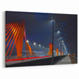 Capture the vibrant energy of Riga with this stunning piece of Riga cityscape art. This eye-catching image showcases the illuminated bridge in Riga at night, with striking orange beams and glowing blue lights that contrast against the dark sky. The modern design of the bridge and the vibrant colors make this a perfect piece for those who love urban scenes and contemporary decor. This Latvia canvas print will add a touch of sophistication and energy to any room, whether in a home or office setting.