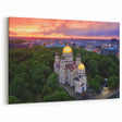 Experience the beauty of Riga with this stunning wall art that captures the golden domes of the Nativity of Christ Cathedral against the backdrop of a vibrant sunset. The rich greens of the city park surrounding the cathedral contrast beautifully with the dramatic skyline, creating a masterpiece that embodies the historic charm and architectural splendor of the Latvian capital. This piece is perfect for those who admire European cityscapes and want to bring a touch of Riga’s history into their homes.