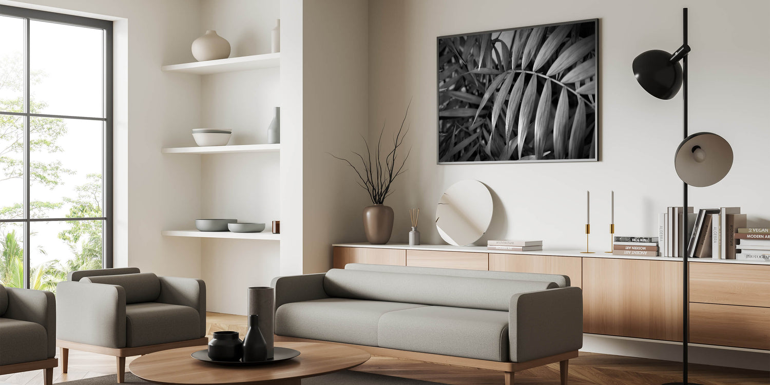 Bring the serene beauty of nature into your home with this stunning Botanical Leaves Wall Art in monochrome. The intricate leaf details in this black and white design evoke a sense of tranquility, making it a perfect addition to your modern or minimalist space. Ideal for those who love nature-inspired wall decor, this artwork adds a touch of elegance and sophistication to any room.