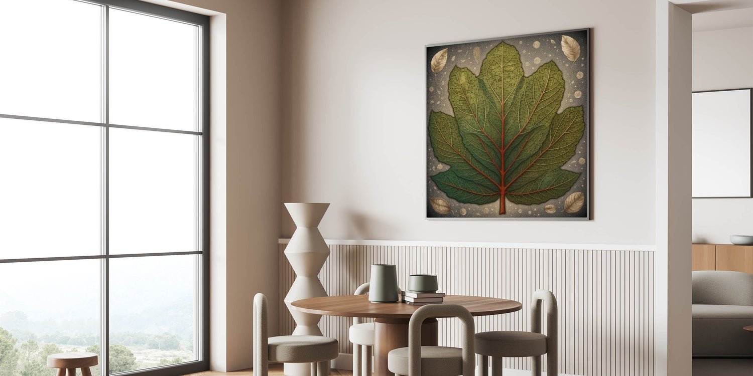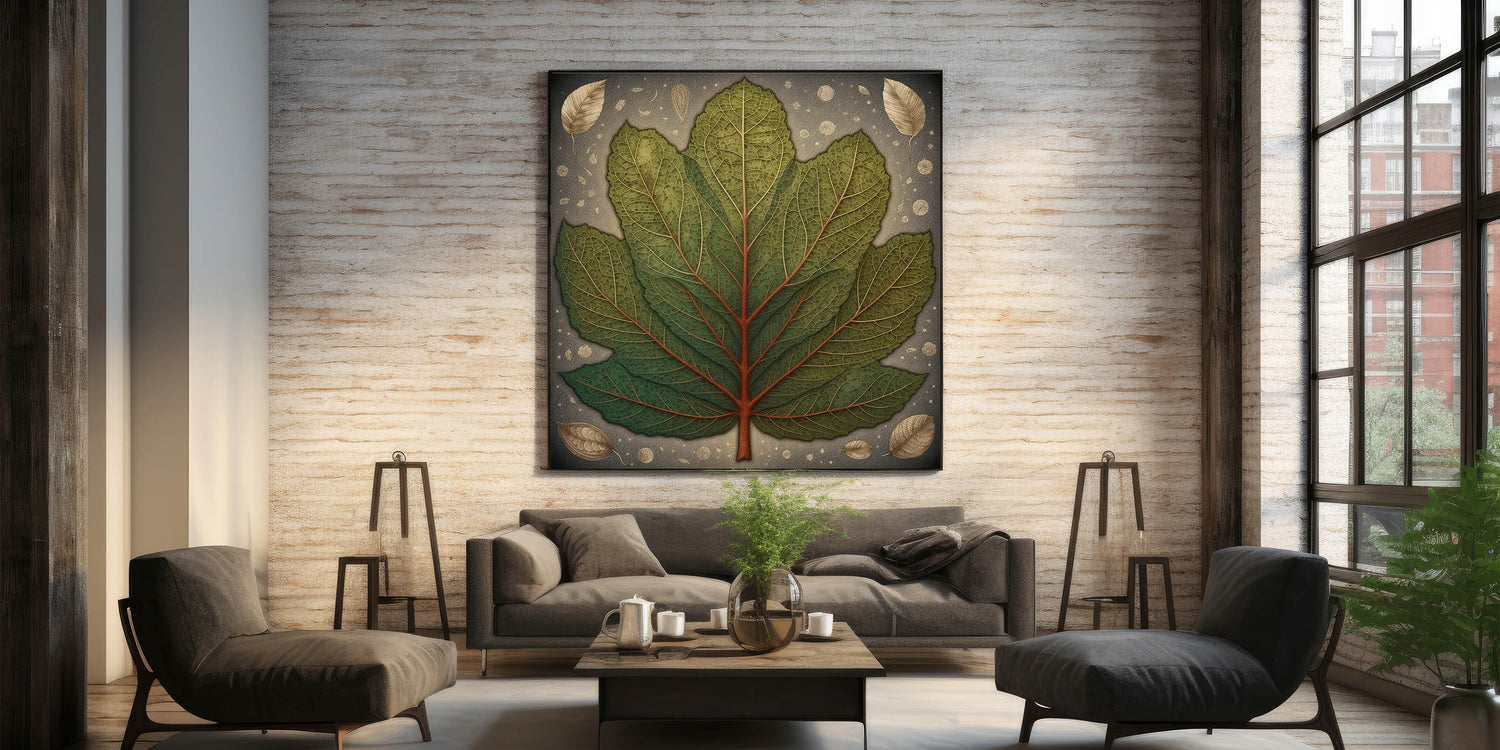 - Nature-inspired wall decor, featuring intricate vein details and a textured background.