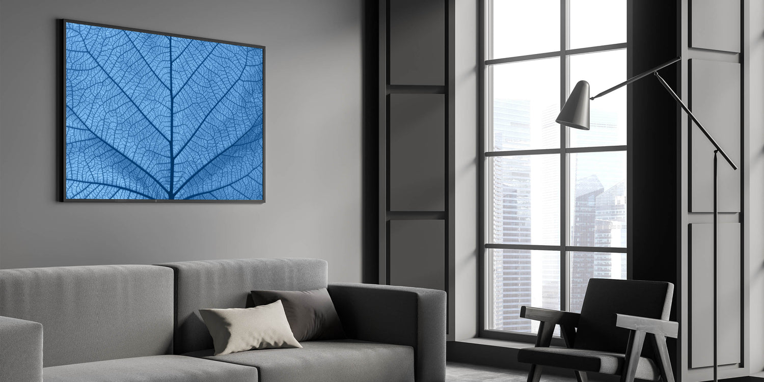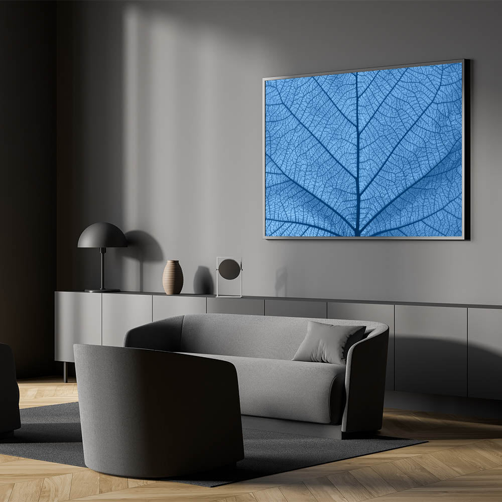 Leaf Wall Art: Detailed Blue Leaf Photography for Contemporary Decor
