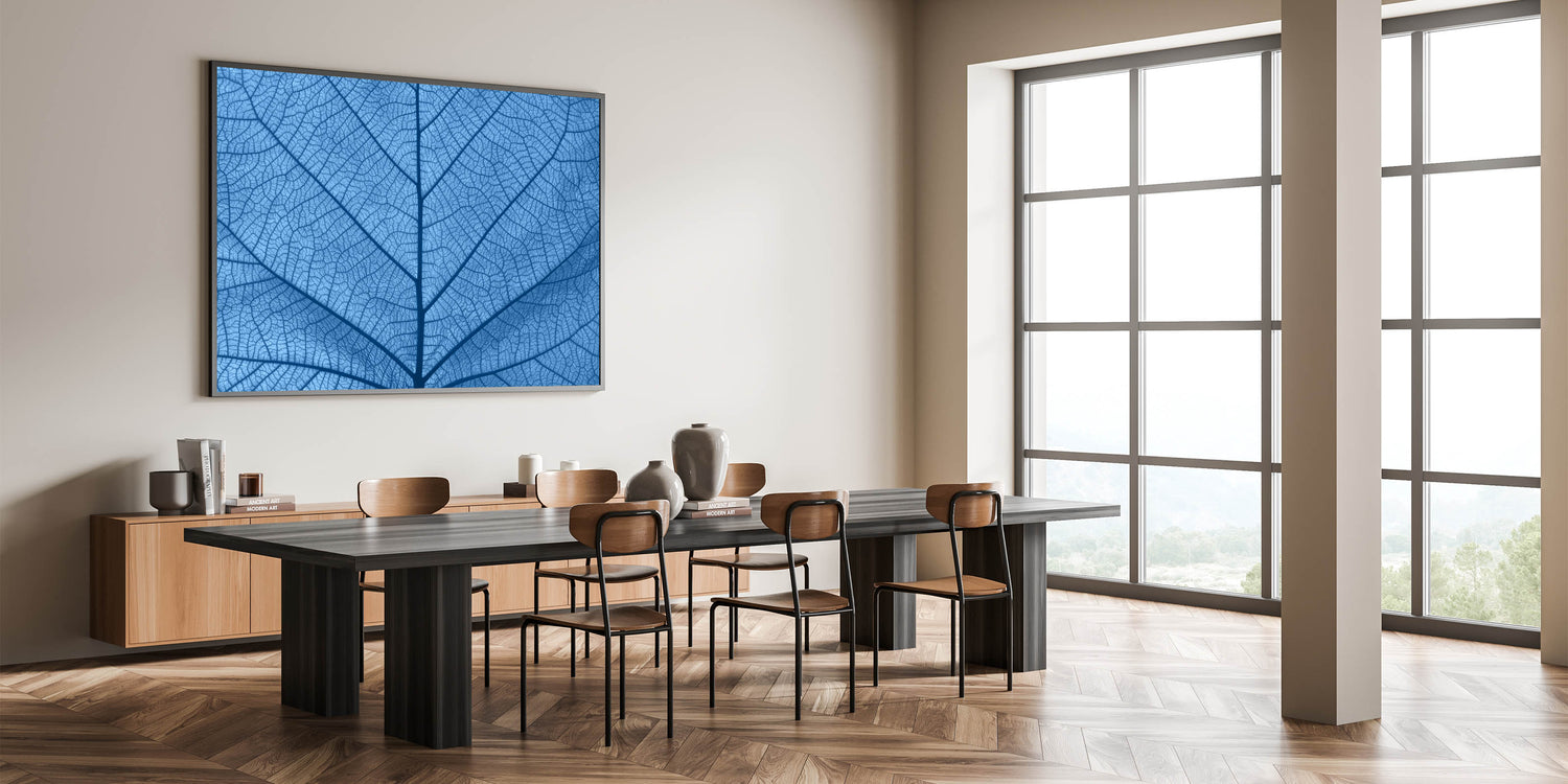 - High-resolution blue leaf photography that adds an artistic flair to any space.
