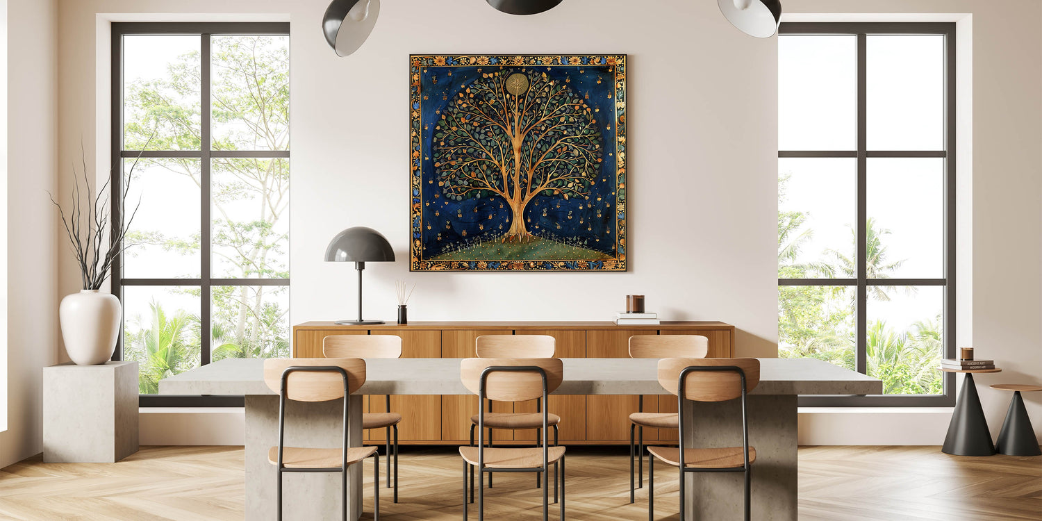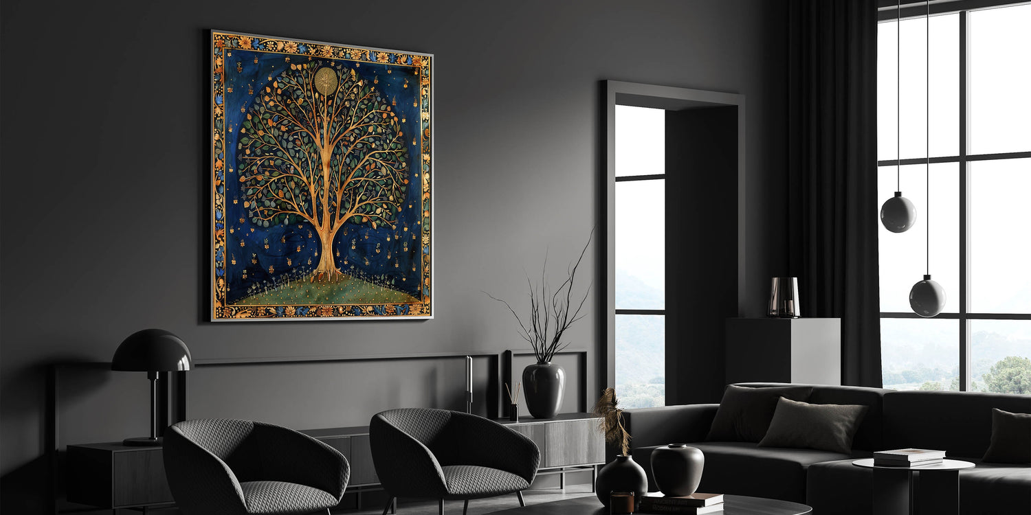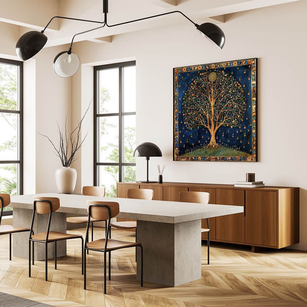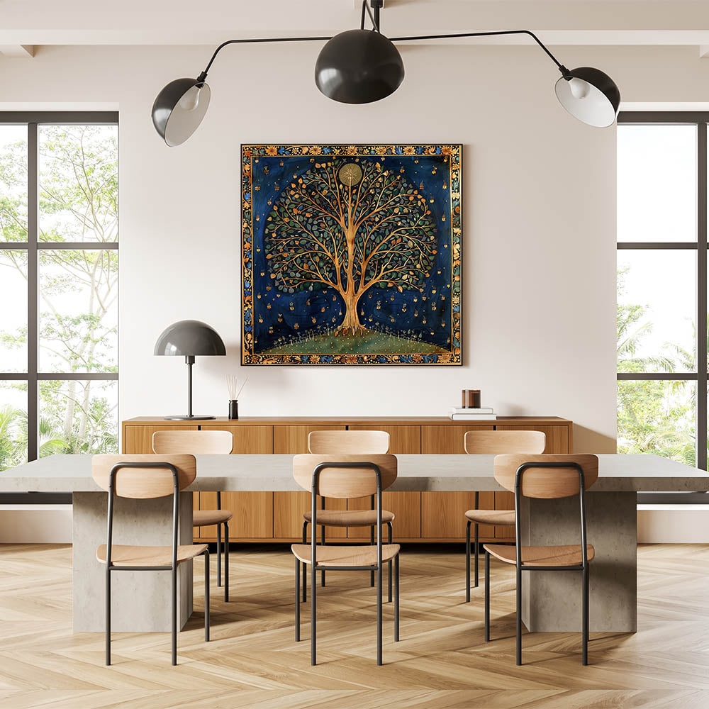 This unique wall art brings together the beauty of a golden tree and a starry night sky, offering a sophisticated and nature-inspired aesthetic. Available in various sizes and materials, it’s the perfect choice for enhancing your decor.