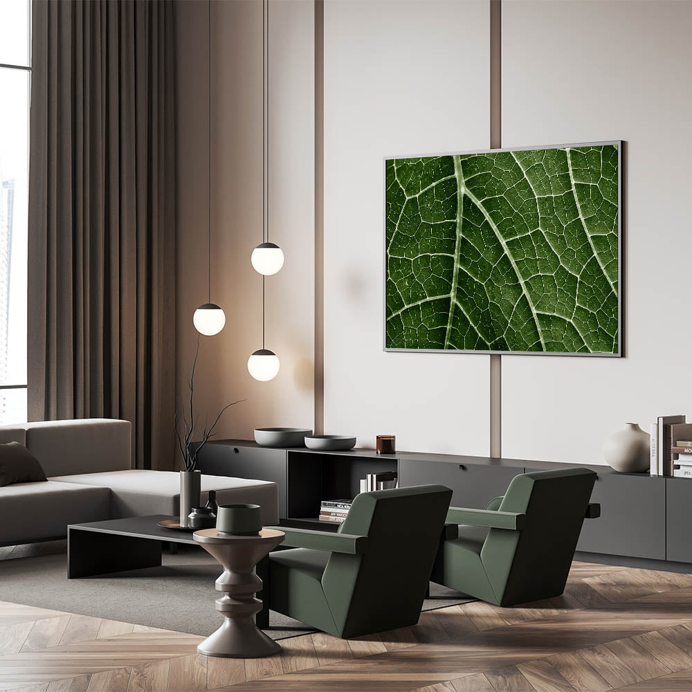 - High-resolution green leaf photography art that enhances any room’s aesthetic.