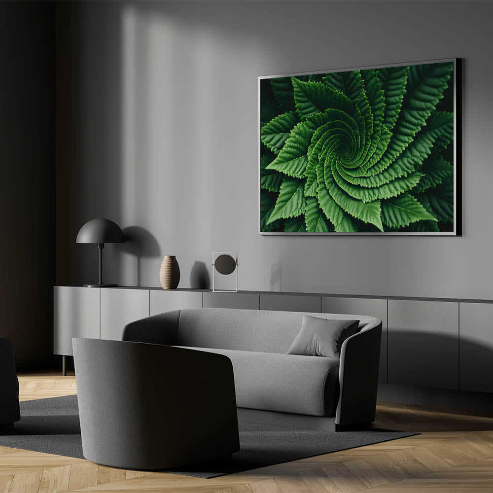 Add a mesmerizing touch of nature to your home with this unique leaf-themed wall art, featuring an intricate spiral arrangement of vibrant green leaves. This nature-inspired leaf art captures the beauty of natural symmetry, creating a captivating visual that draws the eye and adds energy to any room. Perfect for living rooms, bedrooms, or offices, this leaf canvas print brings a modern and dynamic element to your space.