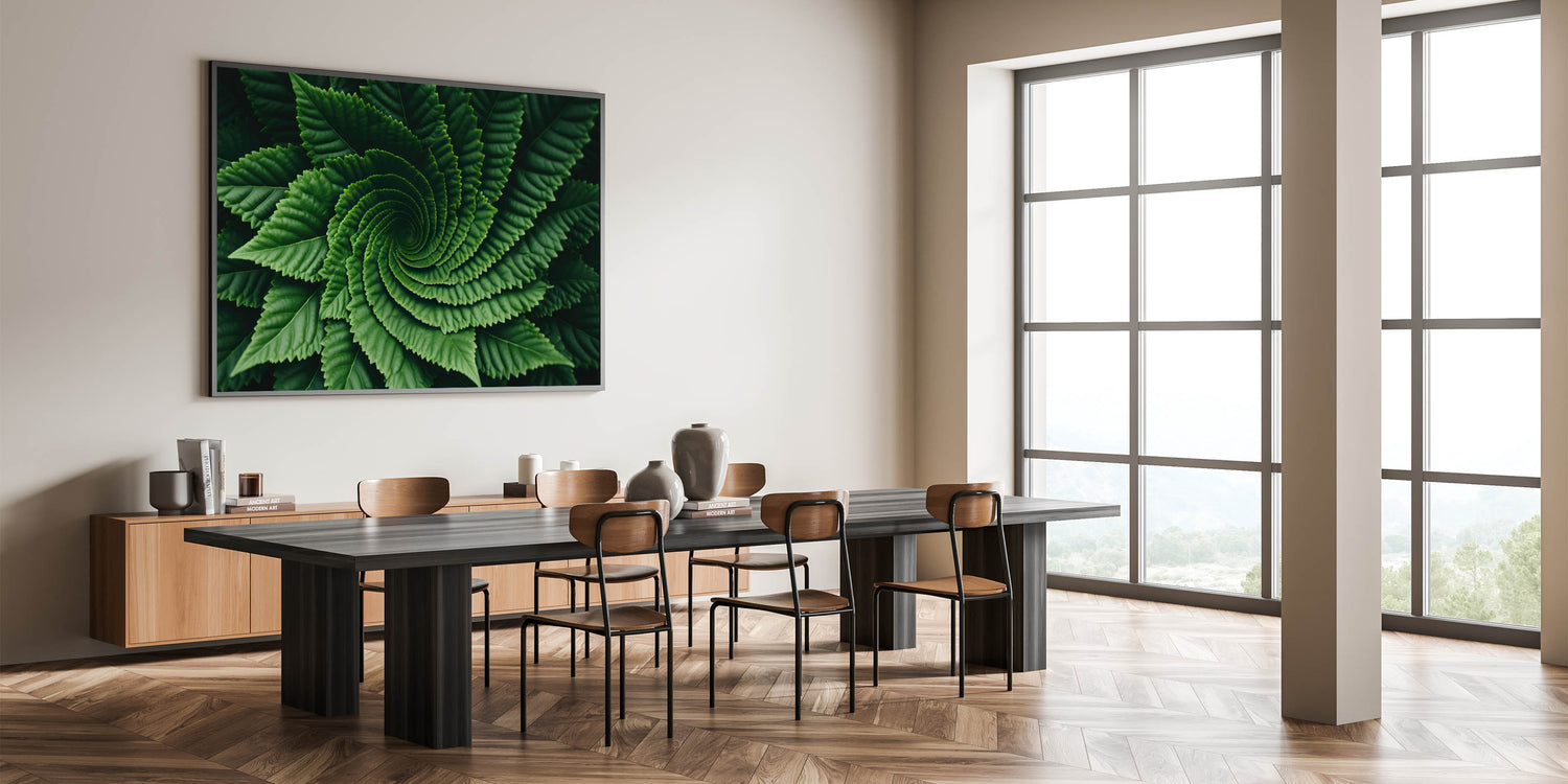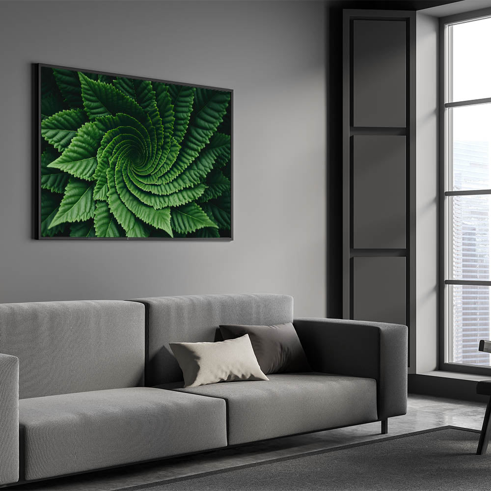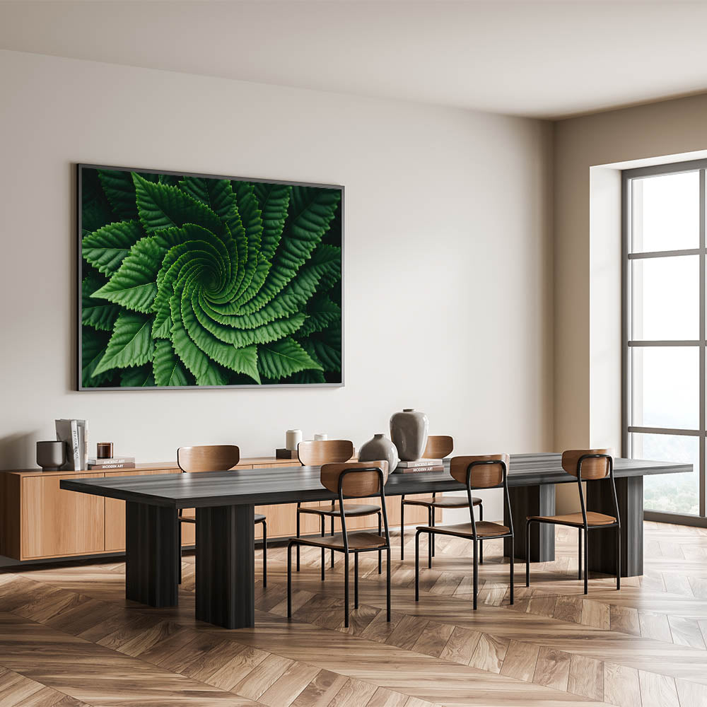 This striking leaf artwork for home is perfect for anyone seeking to bring the intricate beauty of nature indoors. The spiral pattern and lush green tones create a stunning focal point that adds energy and depth to your decor.