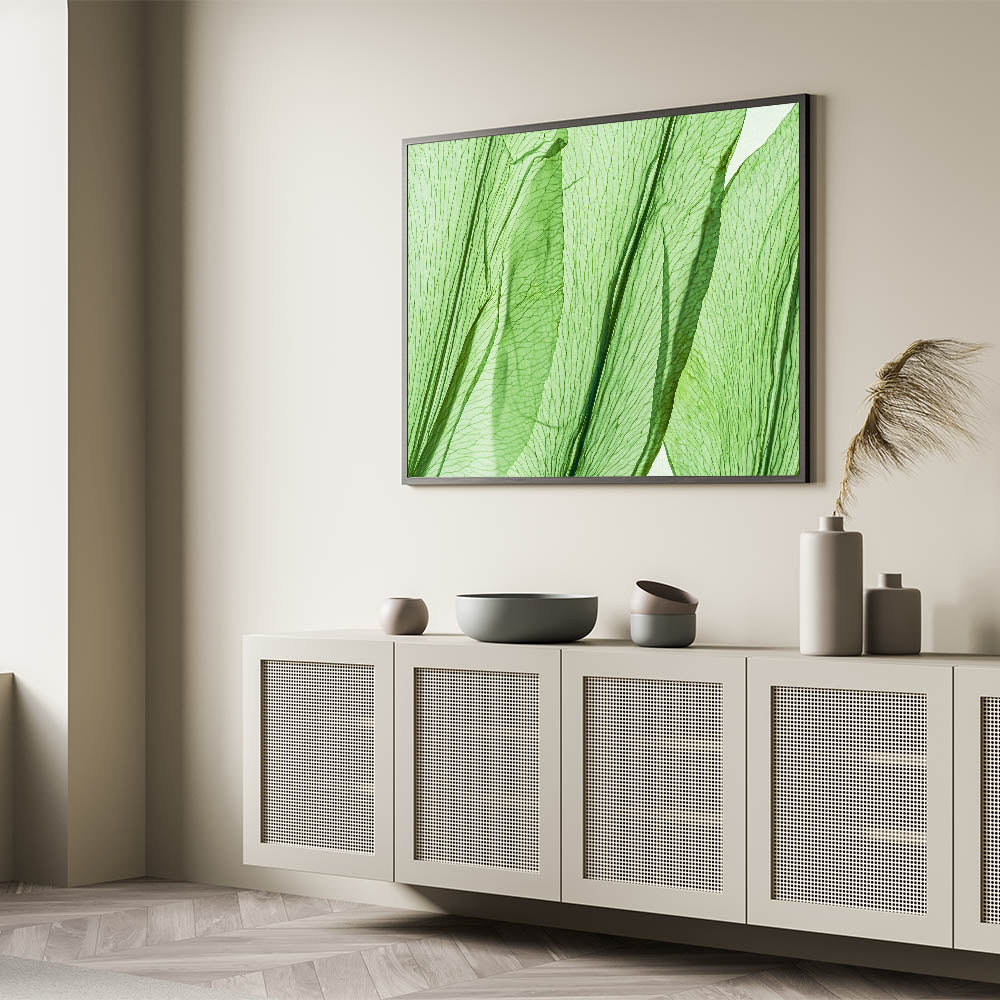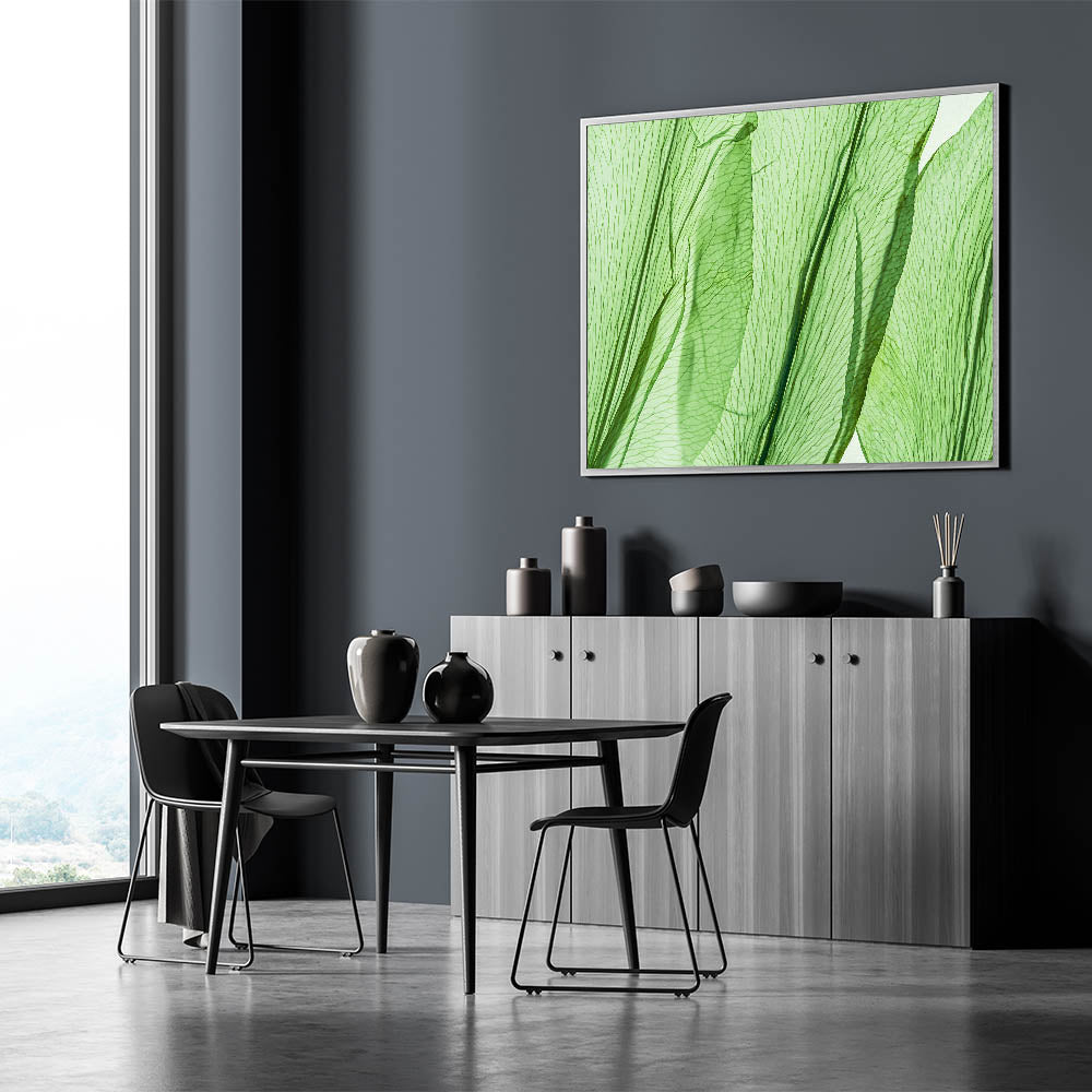 Enhance your home with this stunning leaf-themed wall art, featuring a beautiful close-up of translucent green leaves. The delicate veins and natural textures of this nature-inspired leaf art create a light, refreshing atmosphere in any room. This leaf canvas print is perfect for those who appreciate minimalist decor with a touch of nature, bringing a sense of calm and freshness to your living space, bedroom, or office.