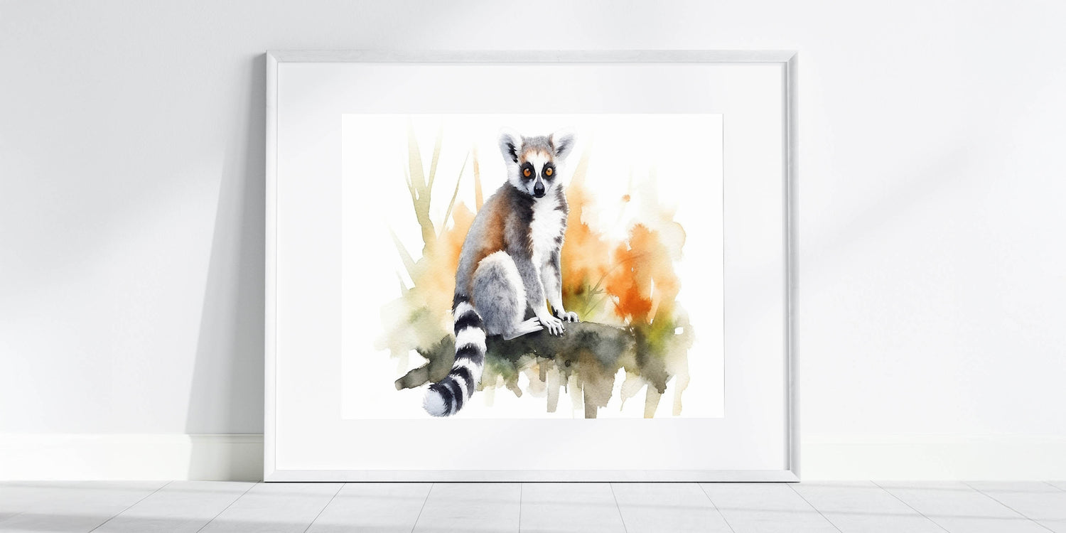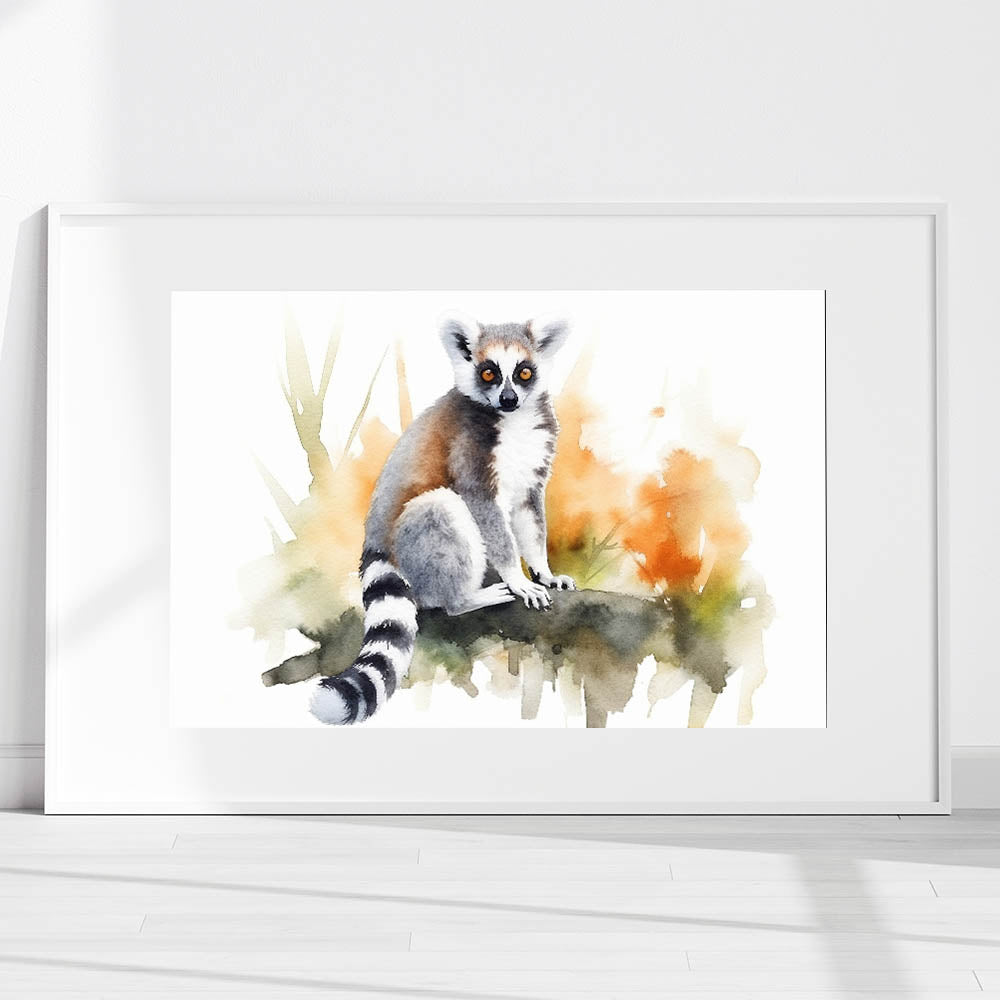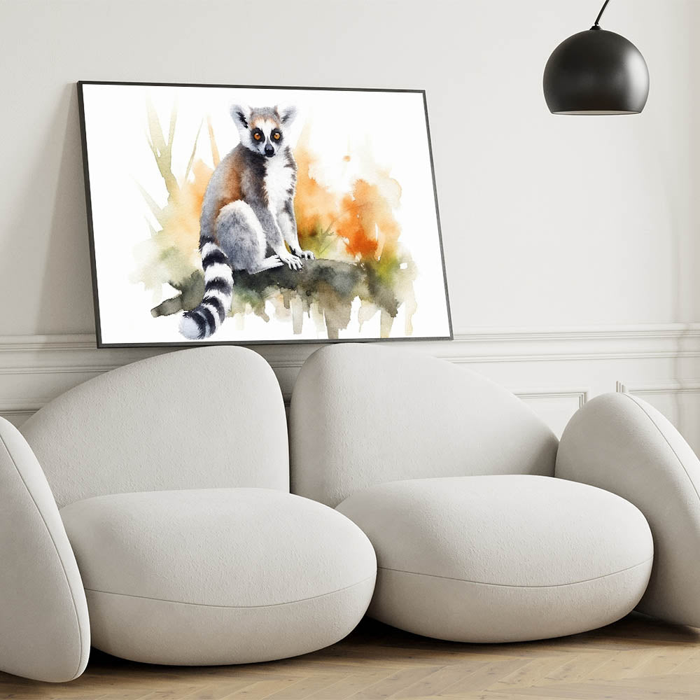 Transform your living space with this Graceful Lemur Art Print, a perfect blend of elegance and nature. This stunning piece showcases a lemur in a serene pose, captured with delicate watercolor strokes that highlight the natural beauty and grace of this fascinating animal. Ideal for those who appreciate wildlife art, this print brings a touch of Madagascar's exotic allure into your home.