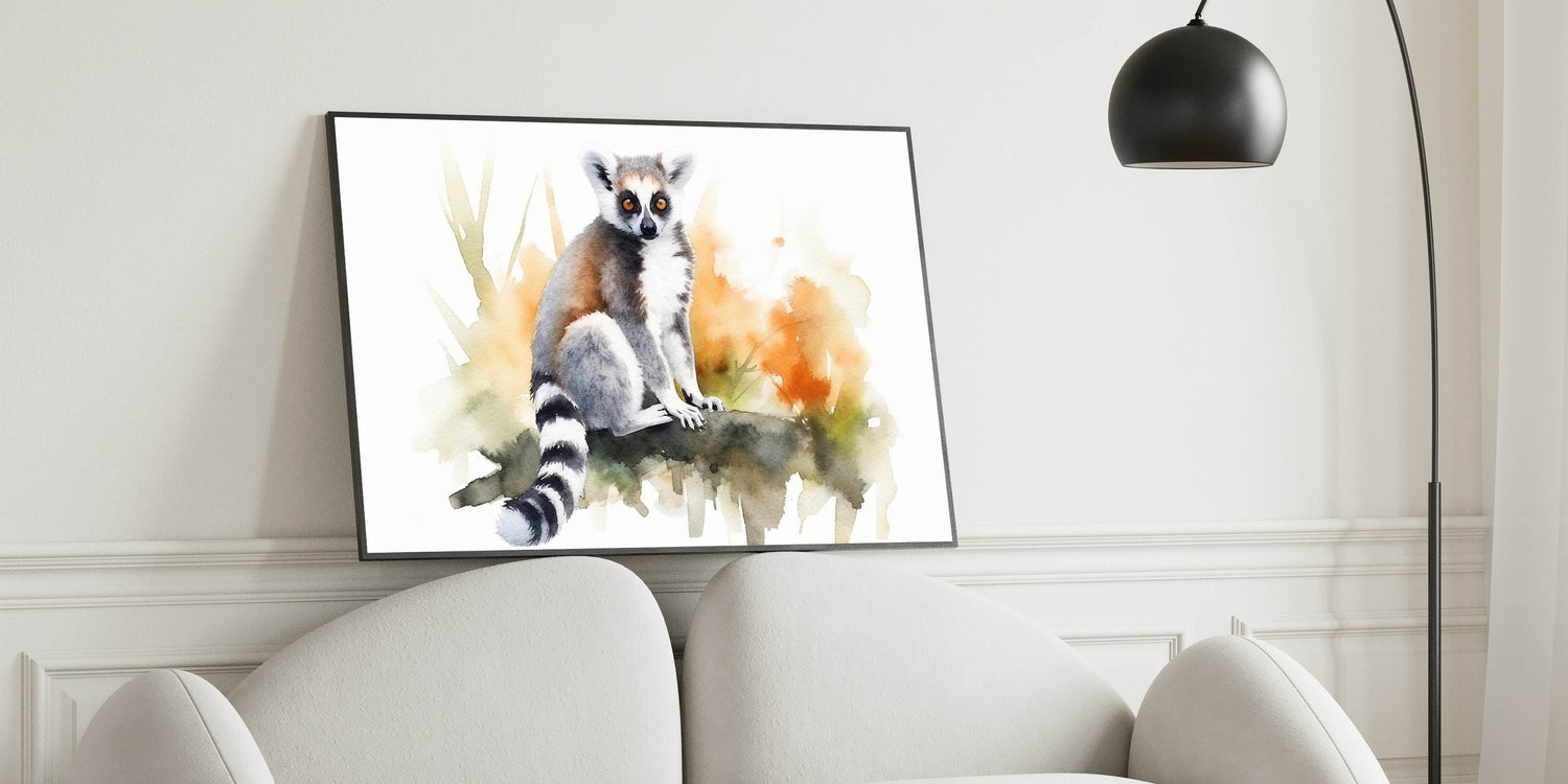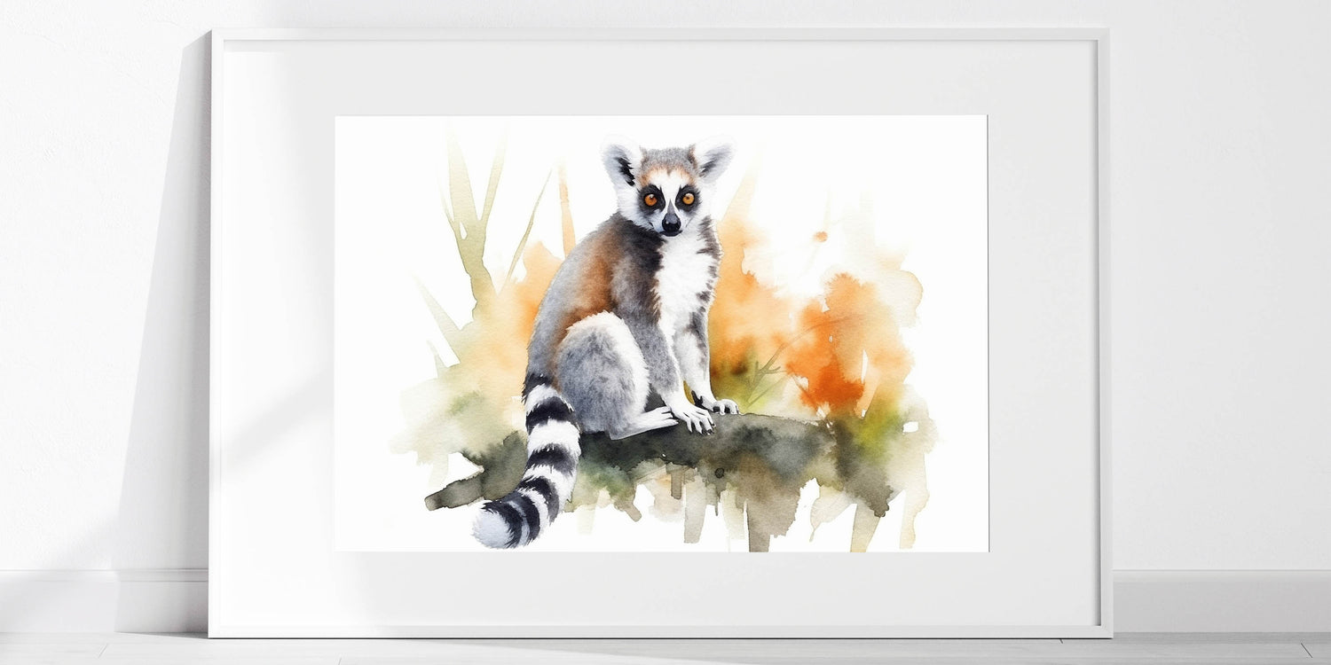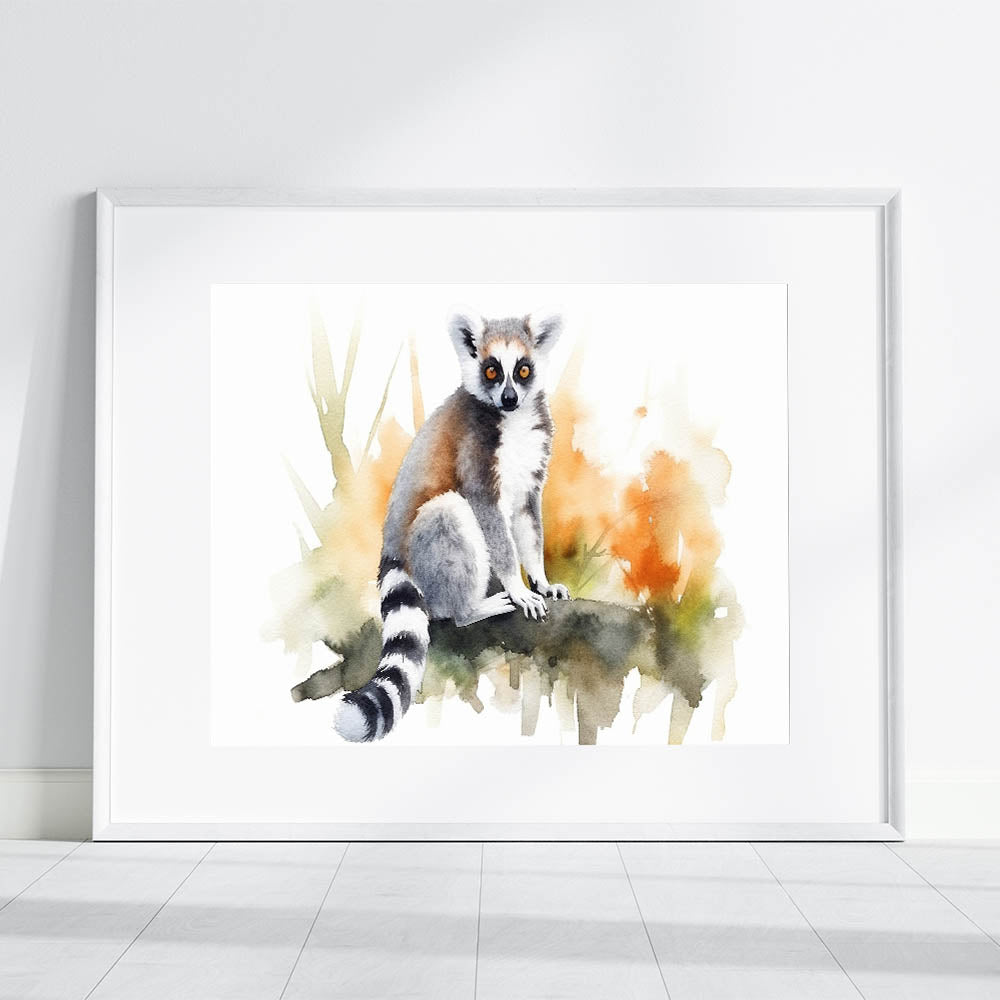 Transform your living space with this Graceful Lemur Art Print, a perfect blend of elegance and nature. This stunning piece showcases a lemur in a serene pose, captured with delicate watercolor strokes that highlight the natural beauty and grace of this fascinating animal. Ideal for those who appreciate wildlife art, this print brings a touch of Madagascar's exotic allure into your home.