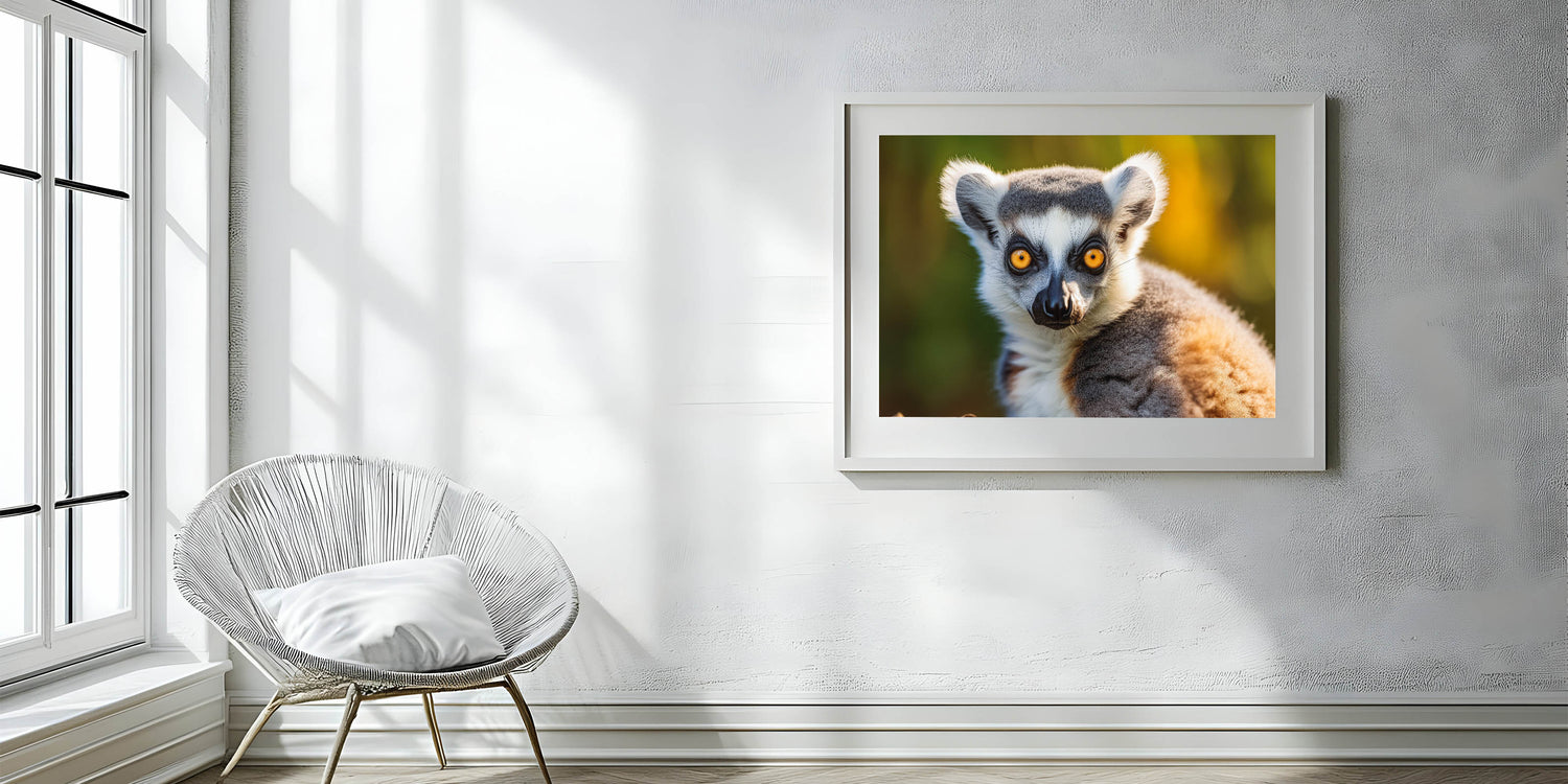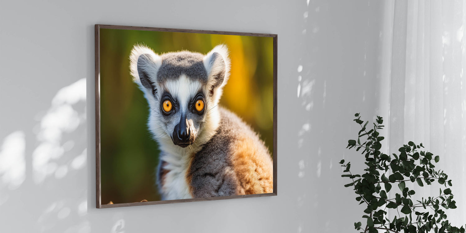 Whether displayed in a living room, bedroom, or office, this lemur art print adds a touch of exotic charm and vibrant energy to your decor. Its lively colors and lifelike detail make it a must-have for anyone who loves the beauty of wildlife.