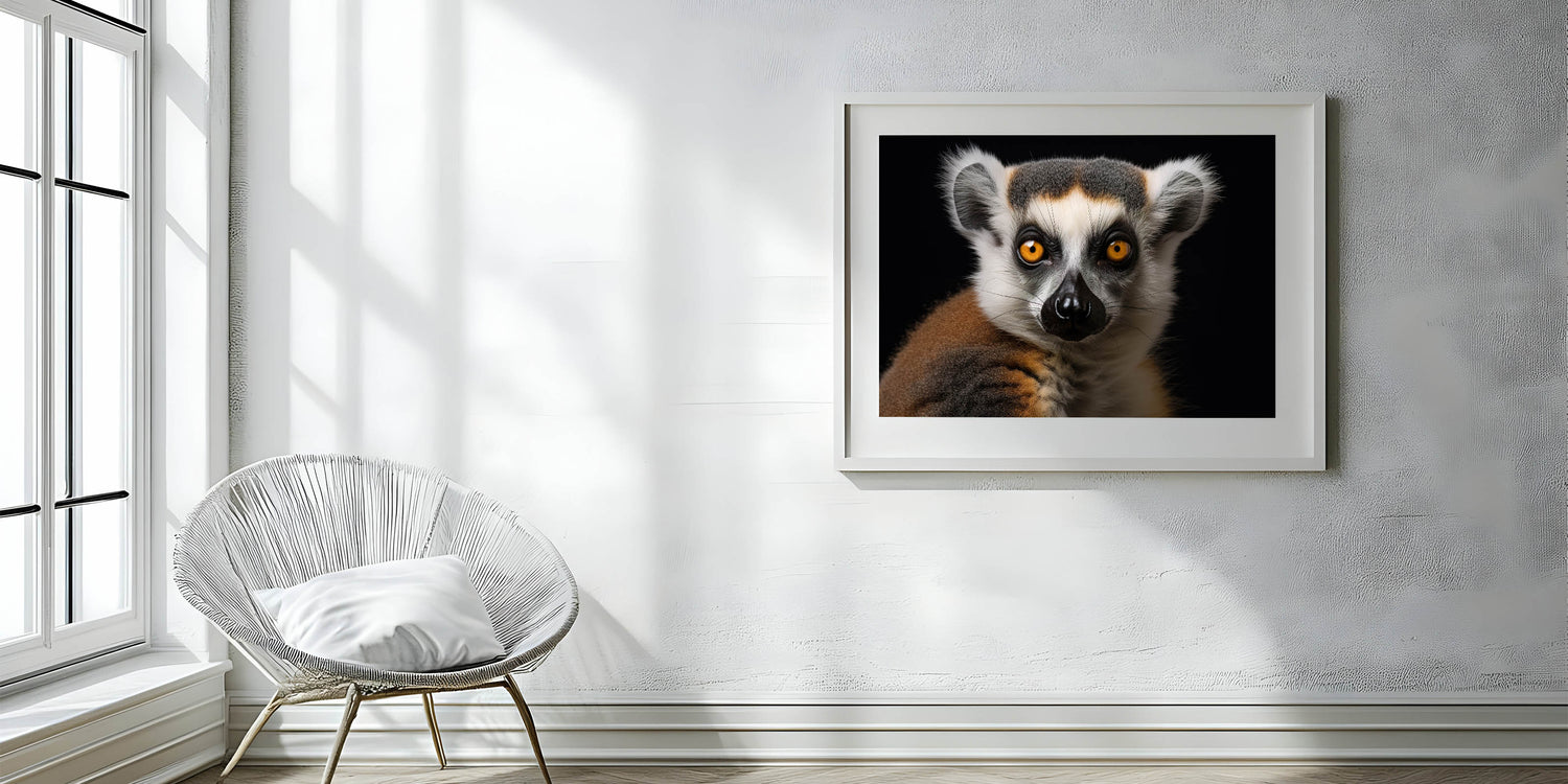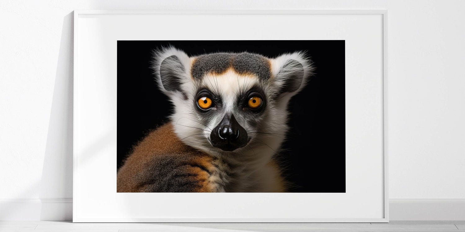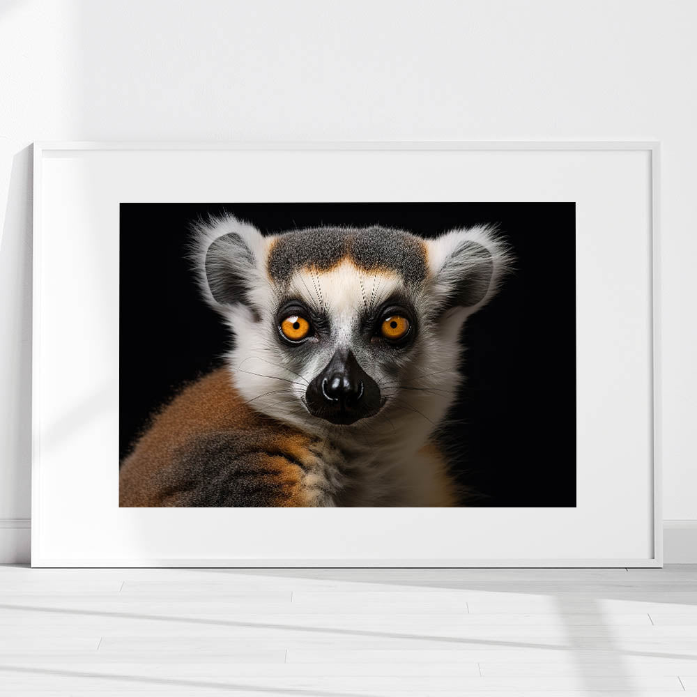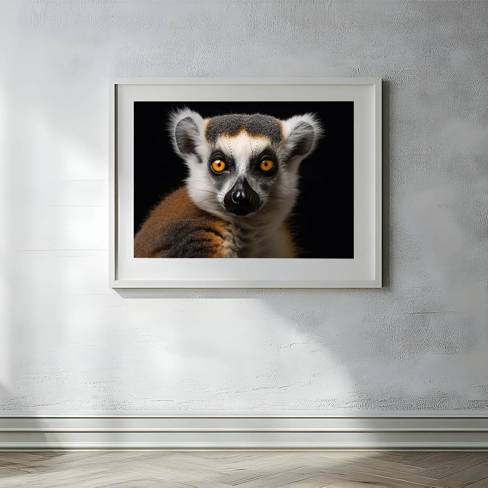 - High-Definition Detail: The sharp contrast between the lemur's vibrant colors and the deep black background makes this piece truly stand out.
