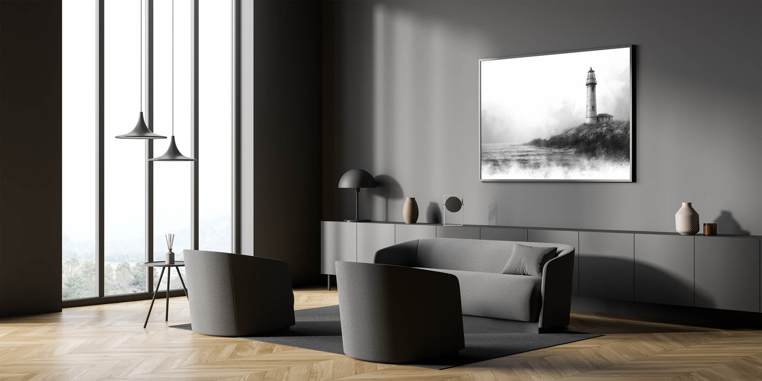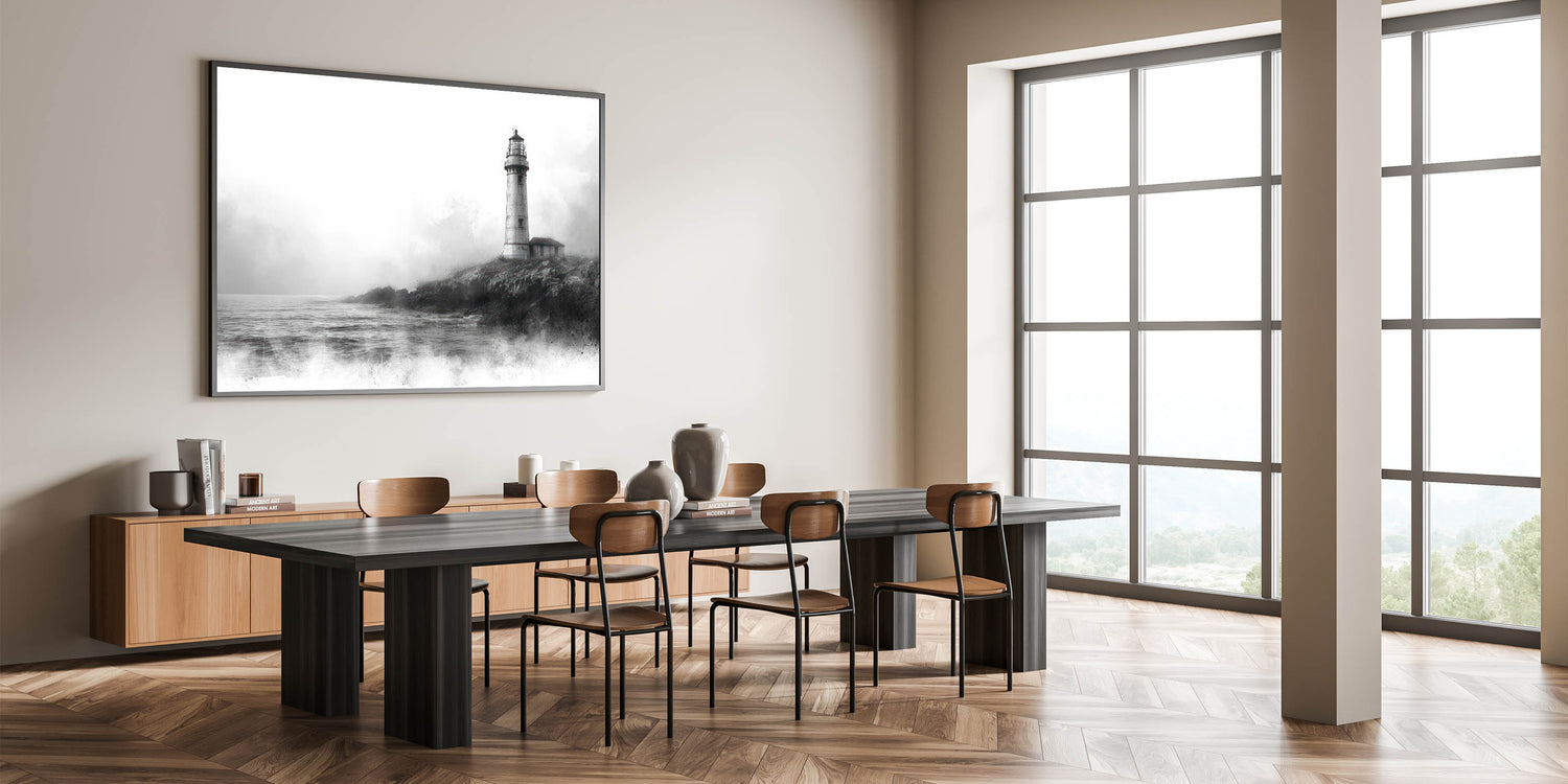 This lighthouse wall art is an excellent choice for those looking to add a touch of coastal mystery and elegance to their home. Its moody atmosphere and striking composition make it a standout piece that will enhance any interior.