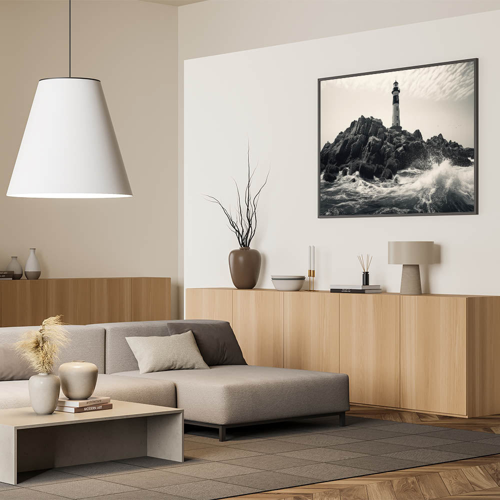 This lighthouse wall art is a great choice for those who love the sea and its powerful, untamed forces. The dynamic composition and moody tones make it a standout piece that will bring energy and depth to your space.