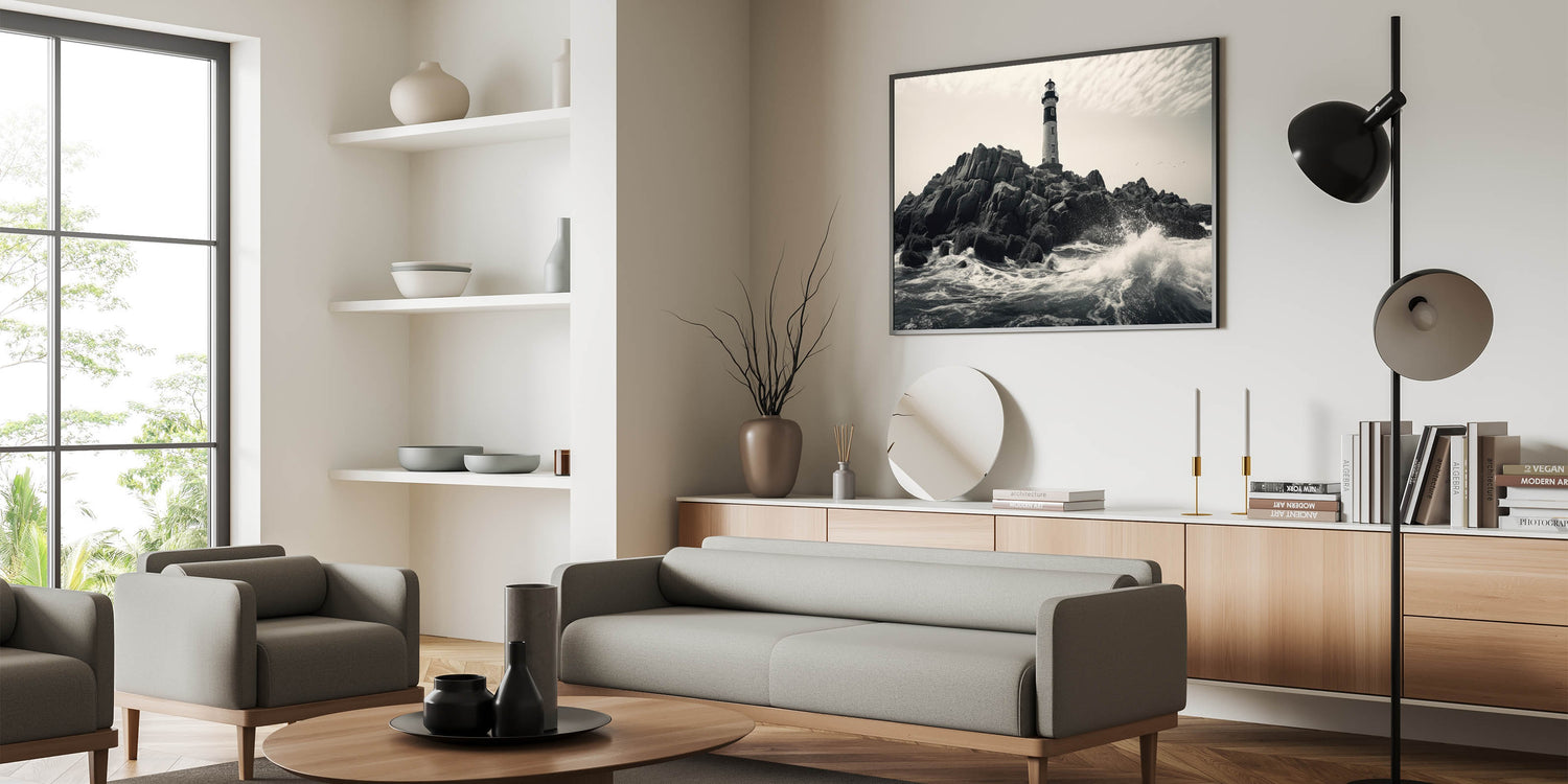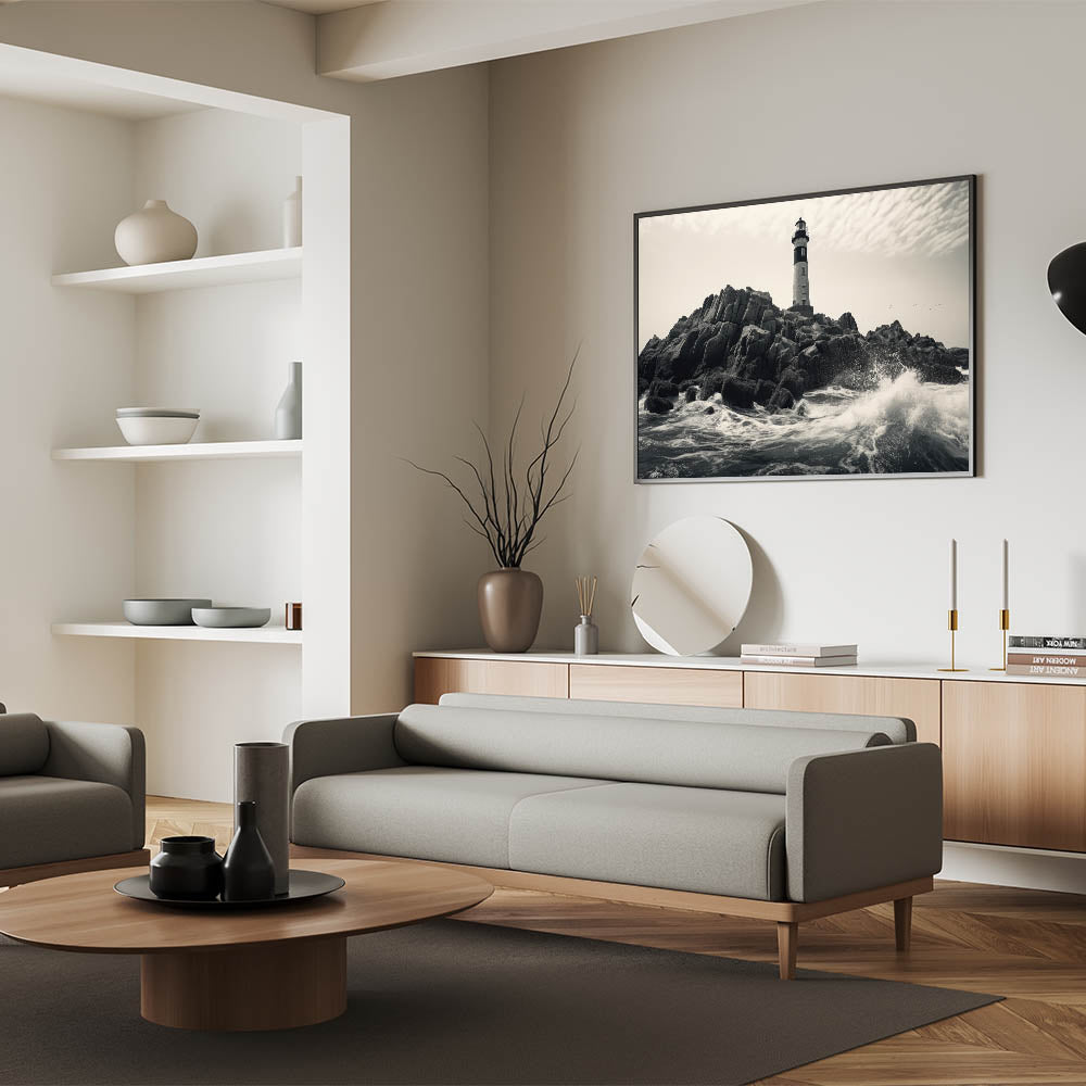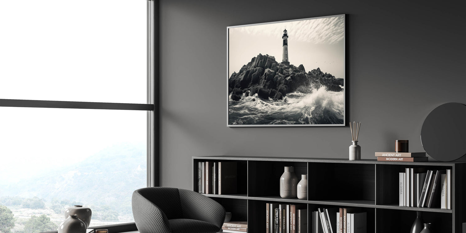 - Design: A powerful depiction of a lighthouse on a rocky coast, perfect for creating a dramatic focal point in any room.