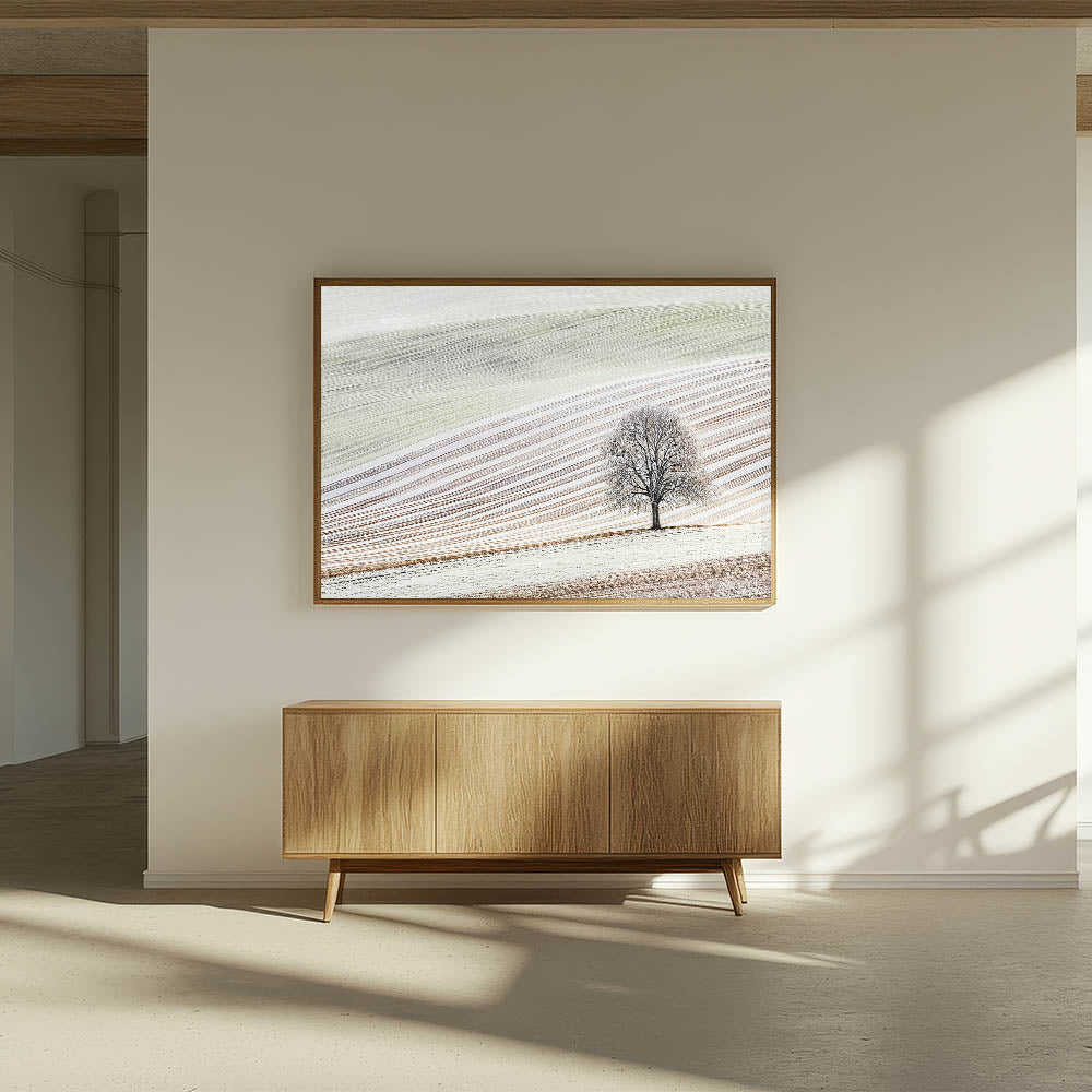 Bring the serene beauty of nature into your space with this stunning minimalist landscape artwork. Featuring a solitary tree in a snow-covered field, this design highlights the contrast between soft earthy tones and a clean wintery backdrop. The subtle gradients of beige, brown, and white evoke a sense of calm and harmony, perfect for contemporary and minimalist interiors.