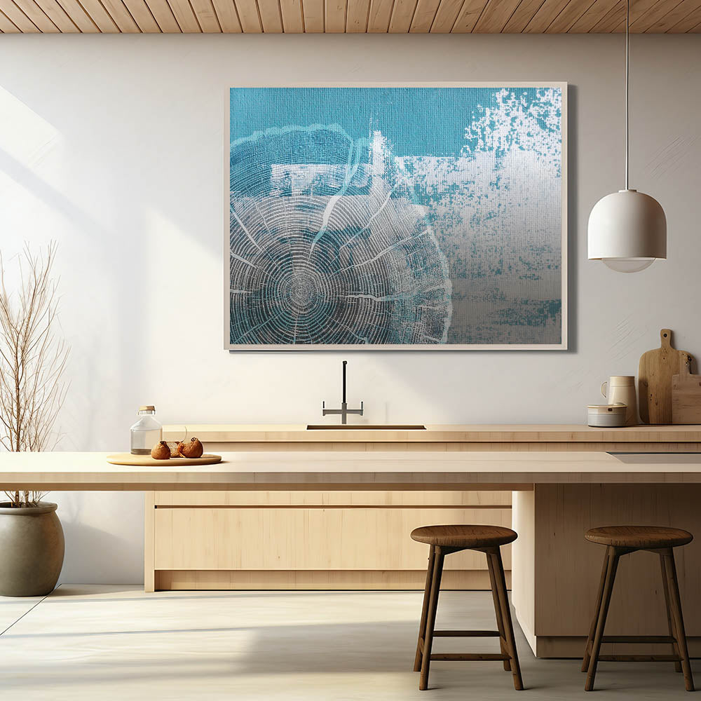 Dive into the serene beauty of this abstract artwork, featuring an intricate blend of geometric strokes and fluid lines. The striking combination of deep teal, soft white, and gray hues evokes a sense of calmness, reminiscent of ocean waves. This piece is perfect for bringing a refreshing and tranquil atmosphere to your living space.