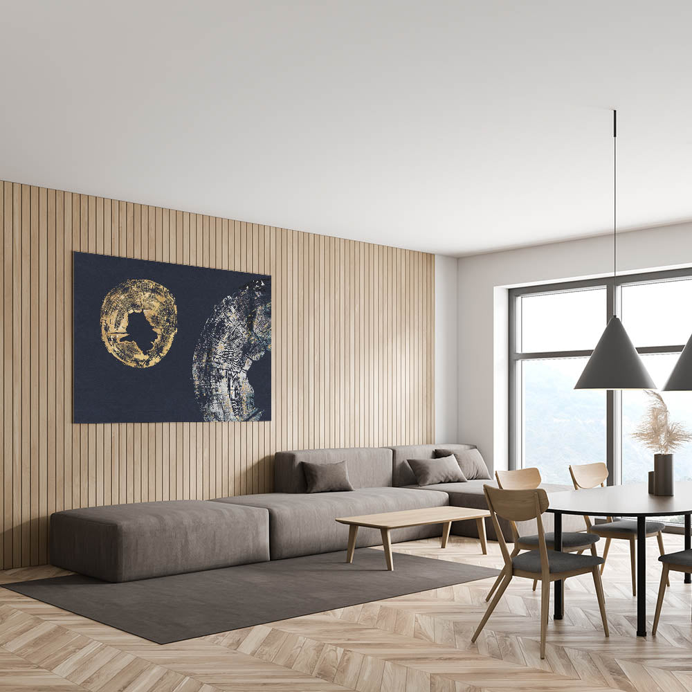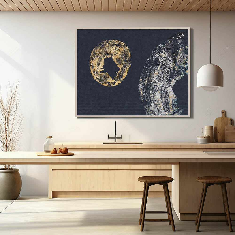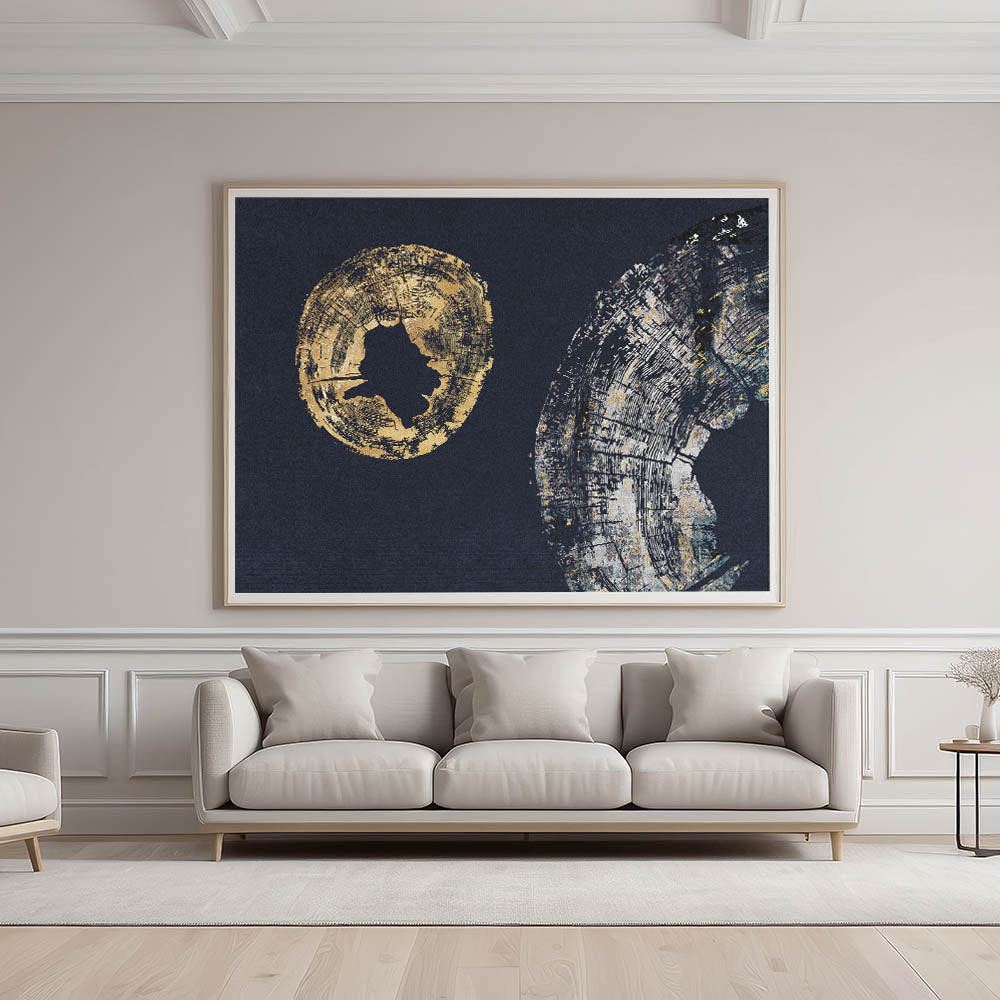 Golden and Navy Abstract Rings - Modern Minimalist Canvas Art