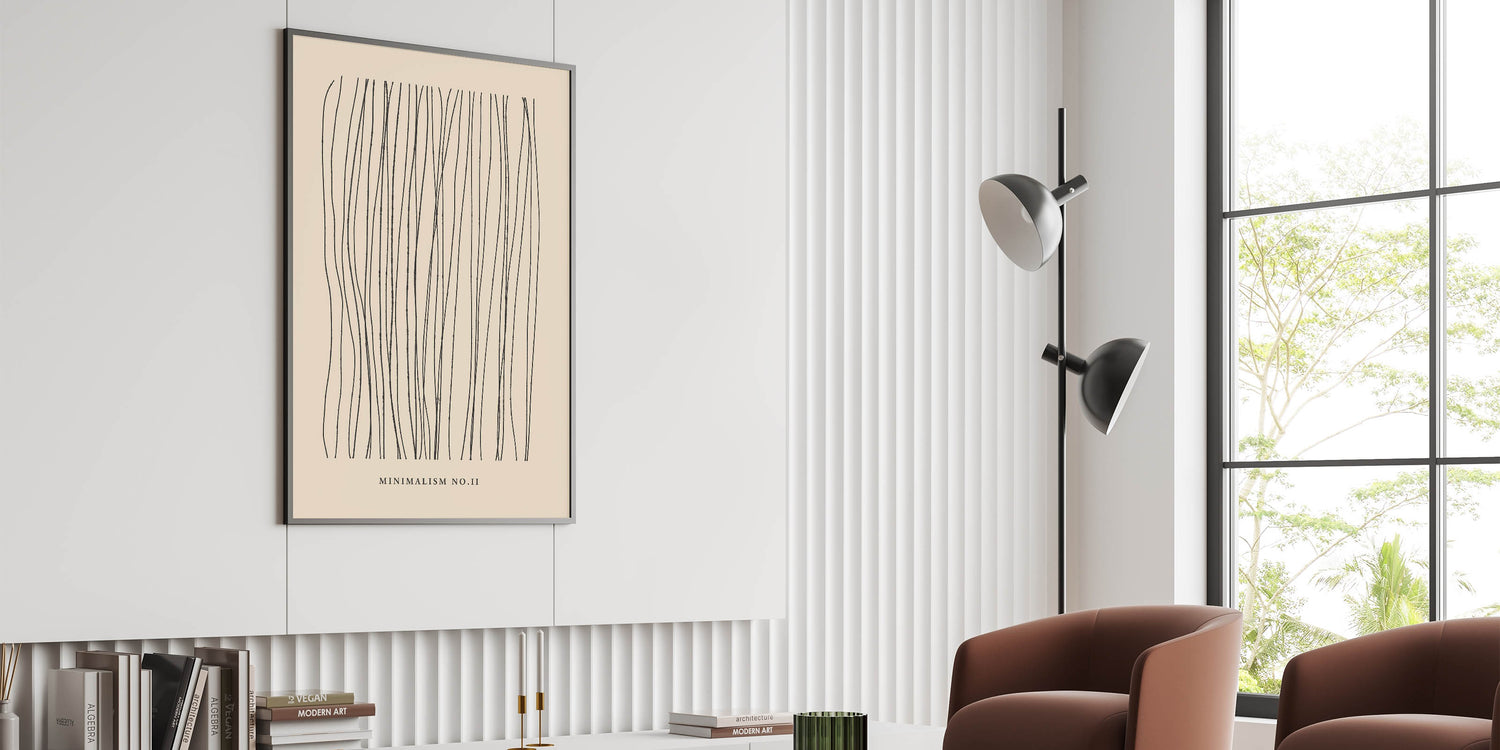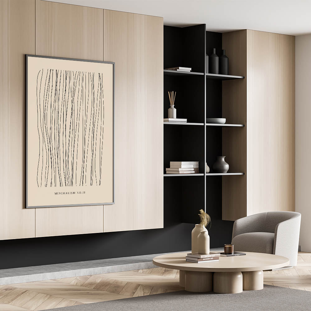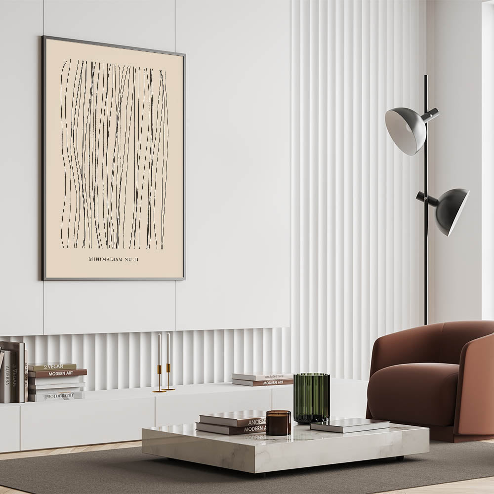 Introducing "Minimalism No. II," a striking piece of modern minimalist abstract art that exudes simplicity and elegance. This art print features a series of delicate, flowing lines that create a captivating pattern against a soft, neutral background. The design’s clean, linear aesthetics make it a perfect choice for those who appreciate the beauty of minimalist decor.