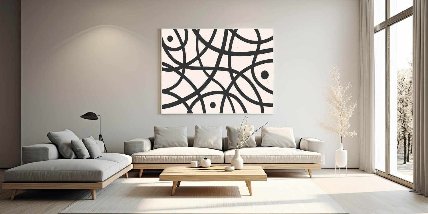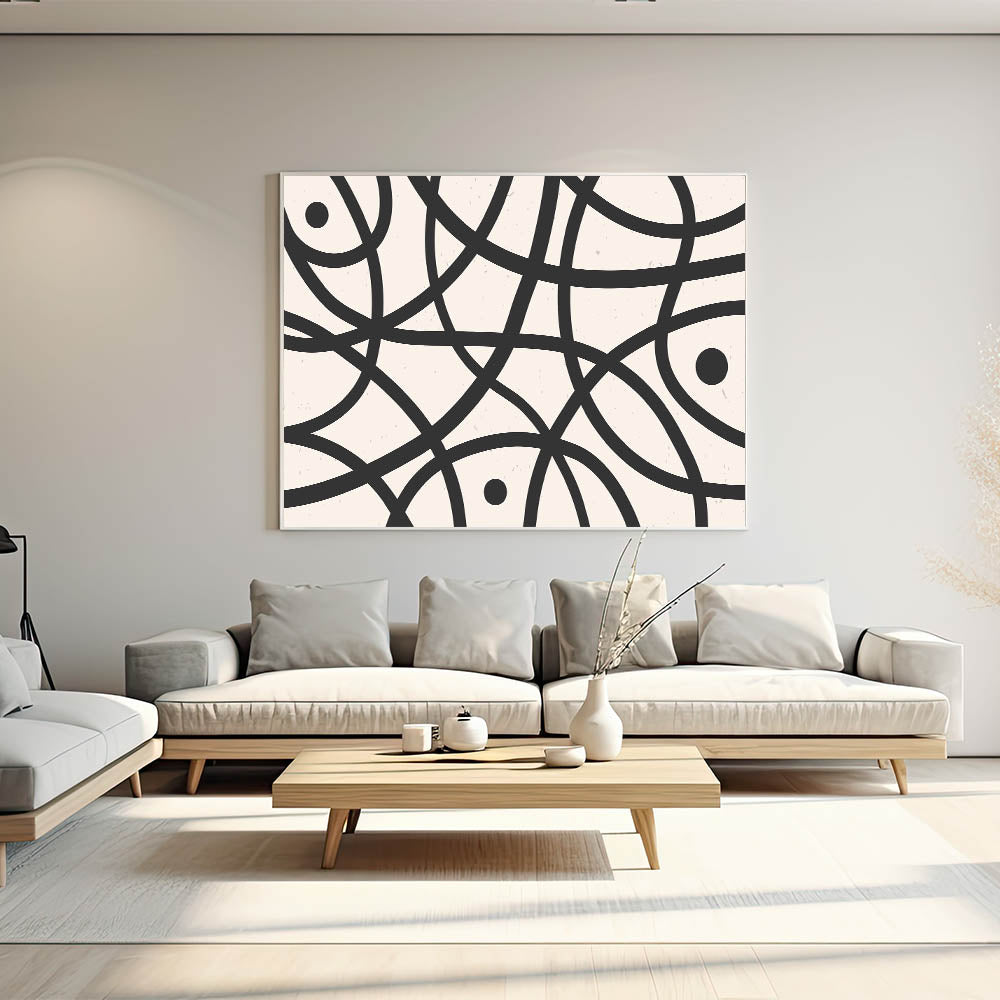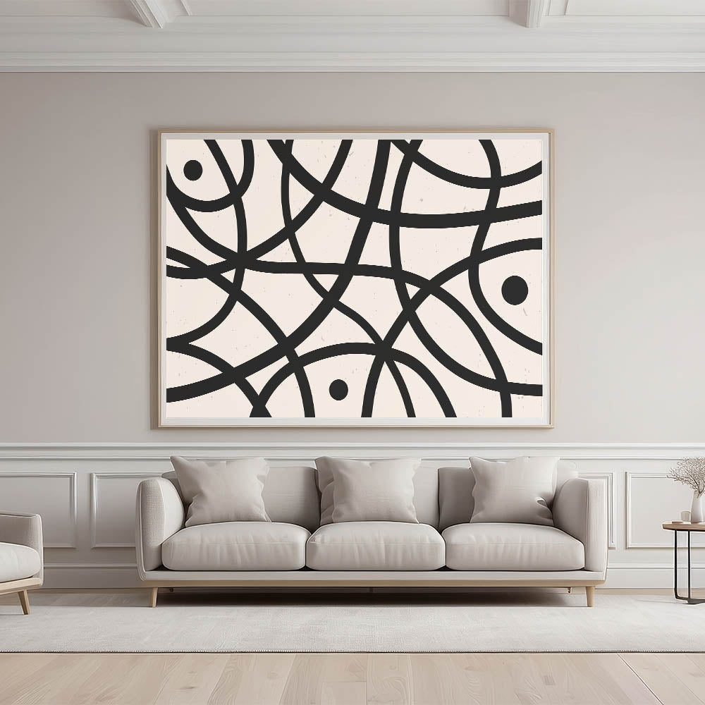 Elevate your living space with this captivating Minimalist Abstract Geometric Art piece, perfect for adding a touch of modern elegance to any room. This artwork features simple yet striking black lines that intricately weave across a neutral background, creating a harmonious balance of form and space. Ideal for those who appreciate the beauty of minimalist design, this piece offers a contemporary aesthetic that complements various interior styles.
