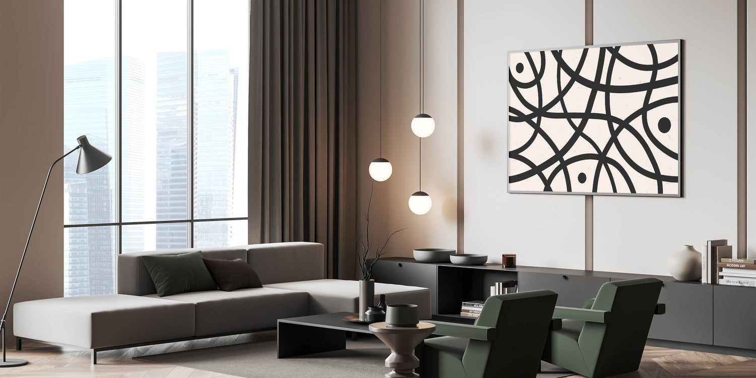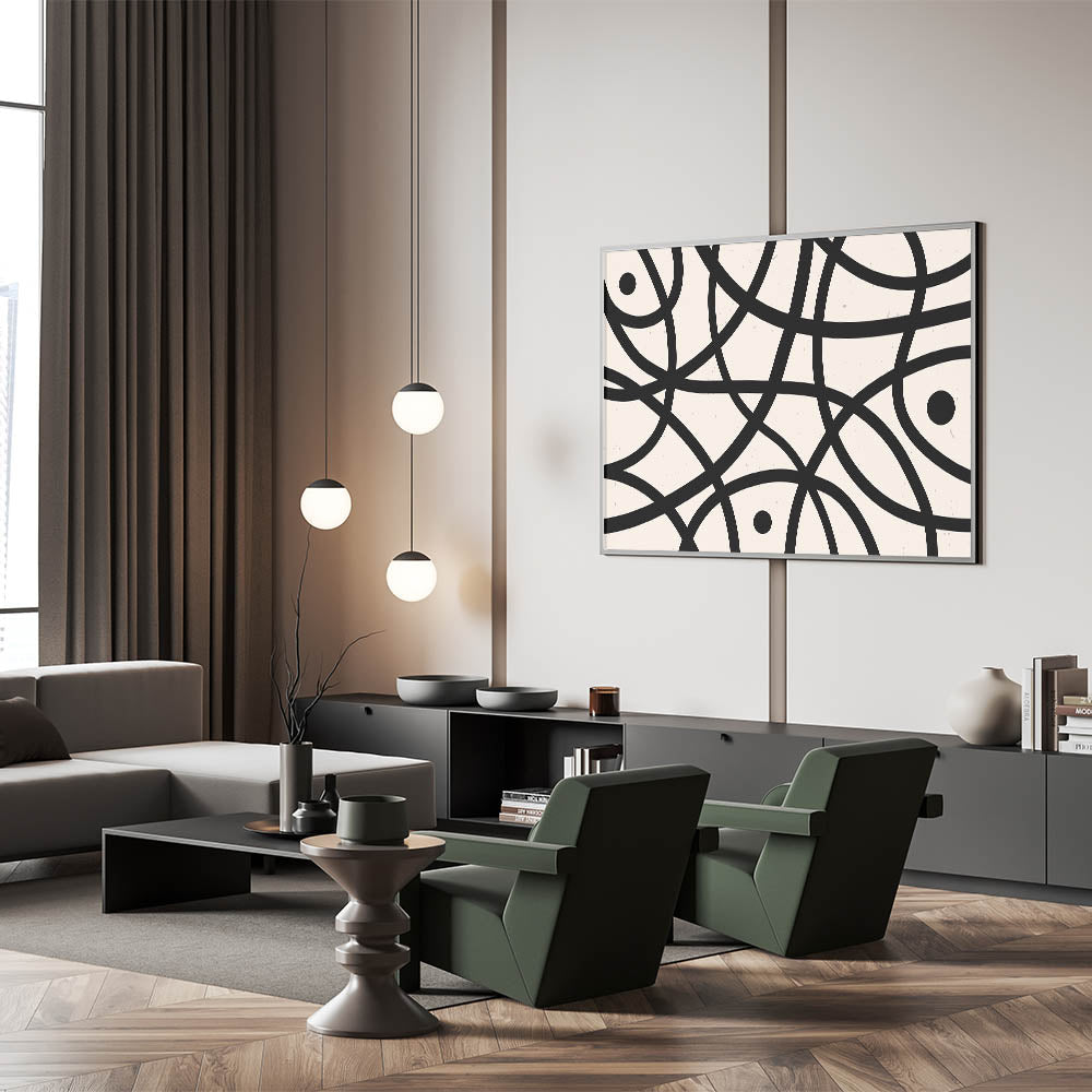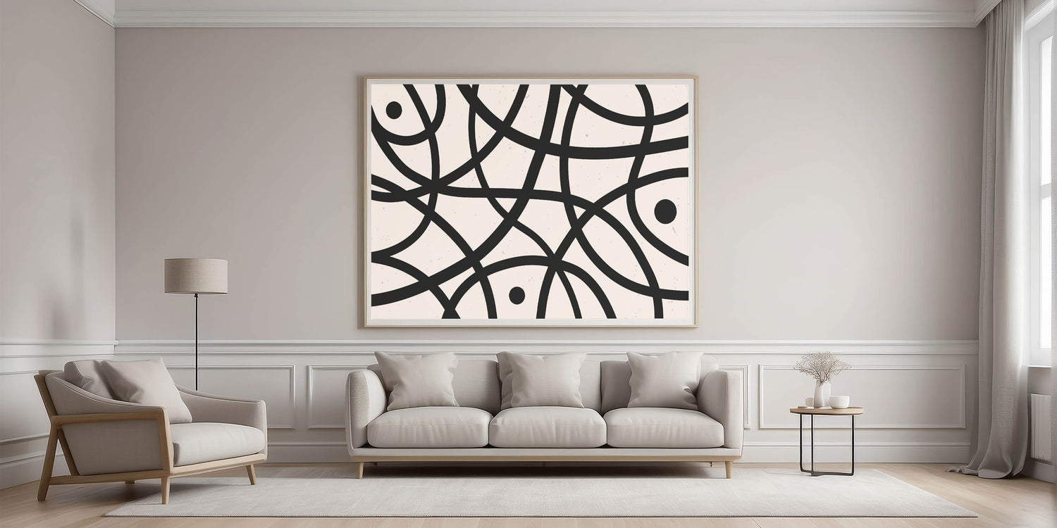 Elevate your living space with this captivating Minimalist Abstract Geometric Art piece, perfect for adding a touch of modern elegance to any room. This artwork features simple yet striking black lines that intricately weave across a neutral background, creating a harmonious balance of form and space. Ideal for those who appreciate the beauty of minimalist design, this piece offers a contemporary aesthetic that complements various interior styles.