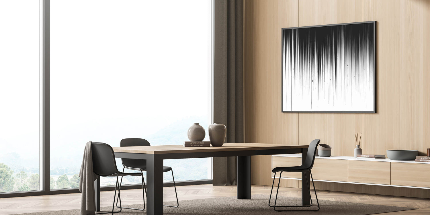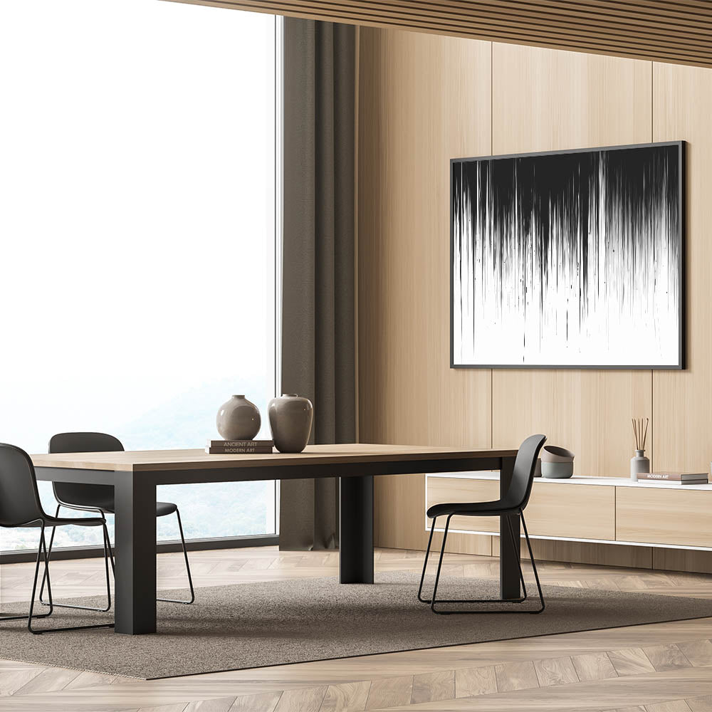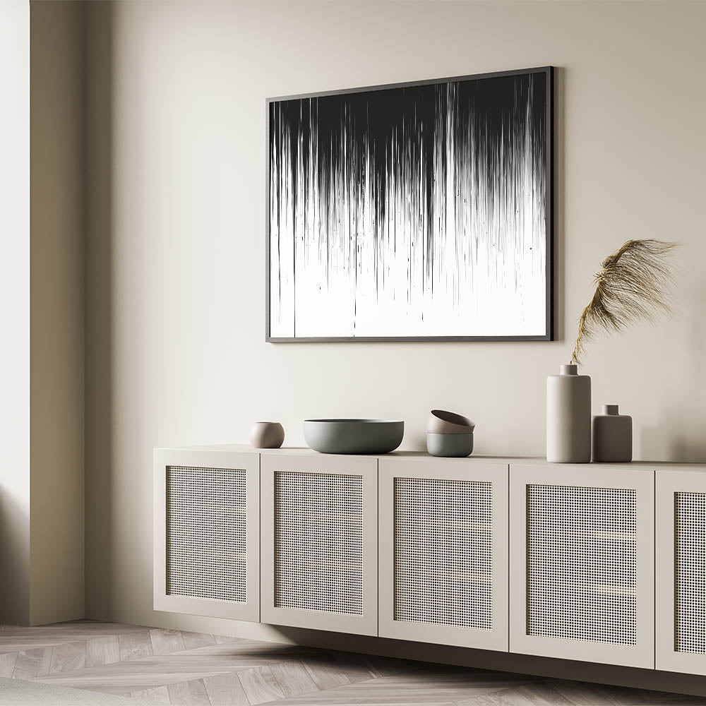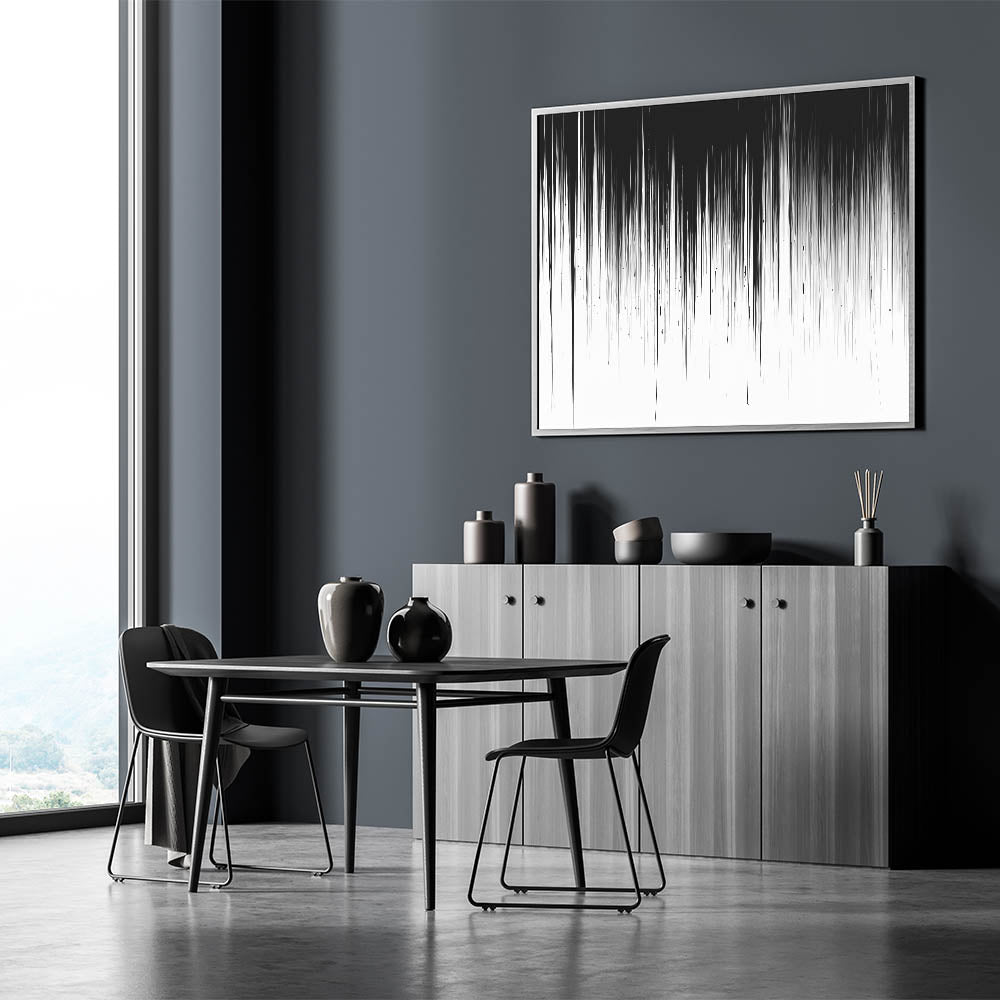 This stunning black and white art piece is more than just a decoration; it's a statement of minimalism and modernity. Its unique drip pattern and artistic monochrome design make it a versatile addition to any decor. Whether you choose a framed canvas or an acrylic glass option, this piece promises to elevate your space with its elegant and contemporary appeal.