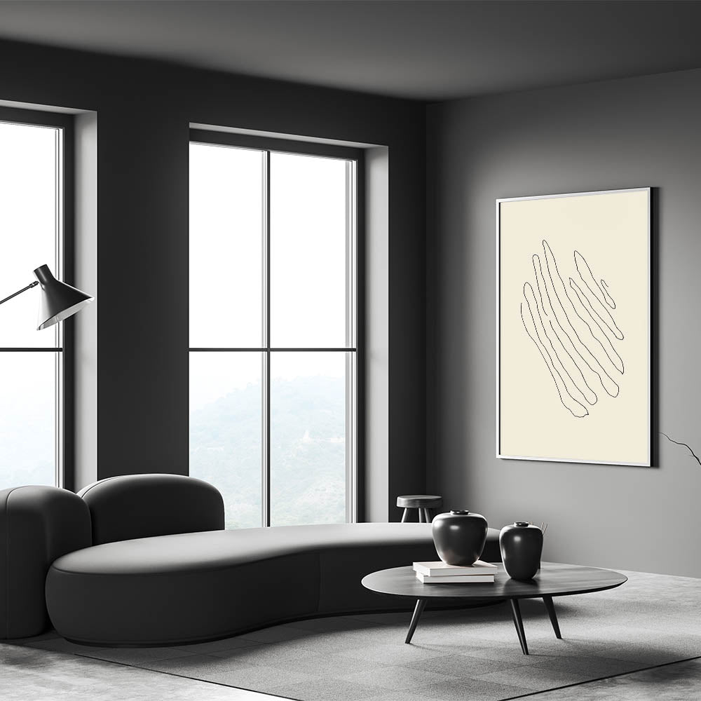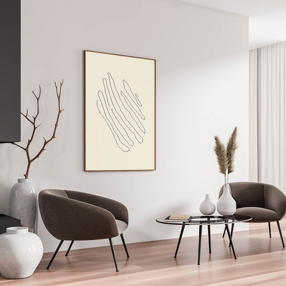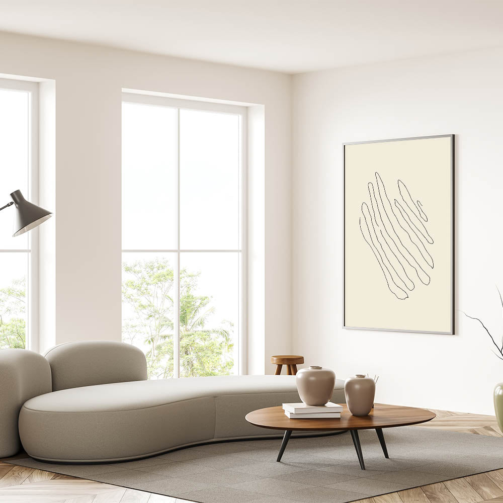 Add a touch of modern elegance to your space with this minimalist line art. The design features wavy black lines gracefully flowing across a soft beige background, creating a sense of movement and tranquility. This artwork is perfect for those who appreciate simplicity and the beauty of clean, organic shapes.