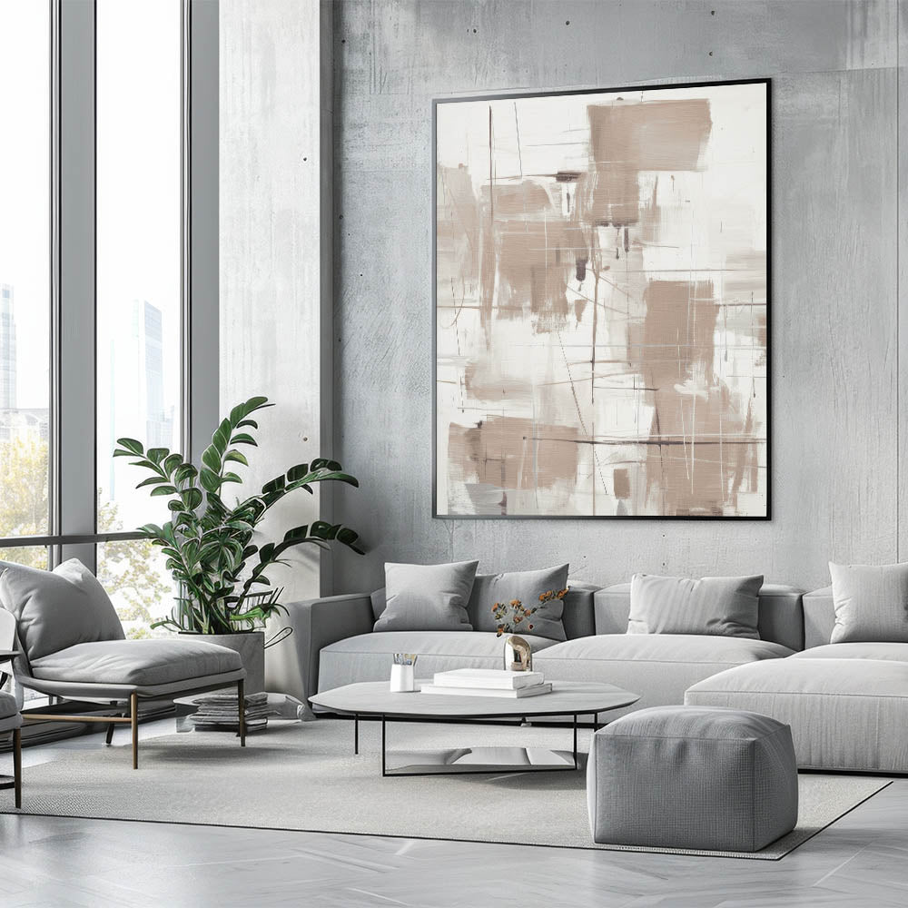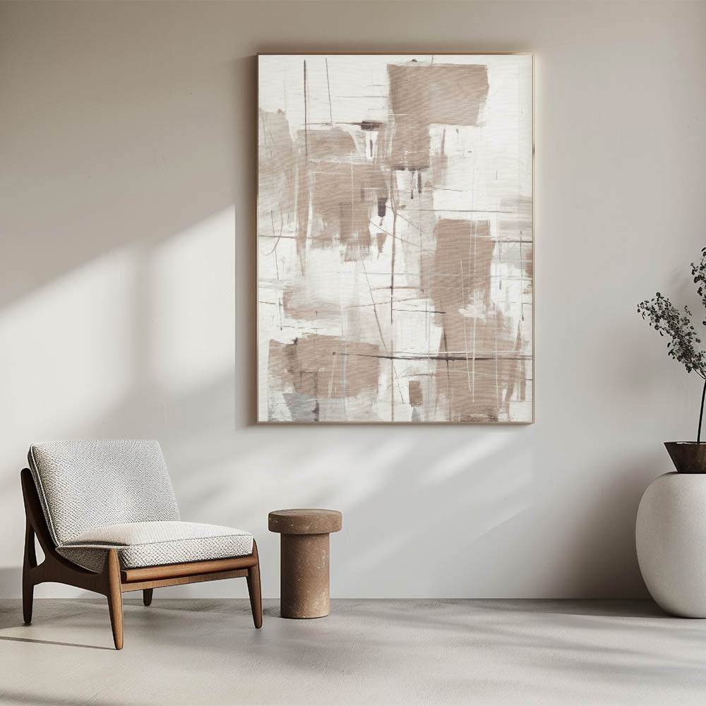 Add a touch of modern sophistication to your space with this stunning piece of abstract wall art. Featuring a soft palette of neutral beige and taupe tones, this minimalist geometric design offers a serene and understated elegance that complements a wide range of interior styles. The gentle interplay of shapes and lines creates a calming atmosphere, making this artwork perfect for spaces where relaxation and tranquility are desired.