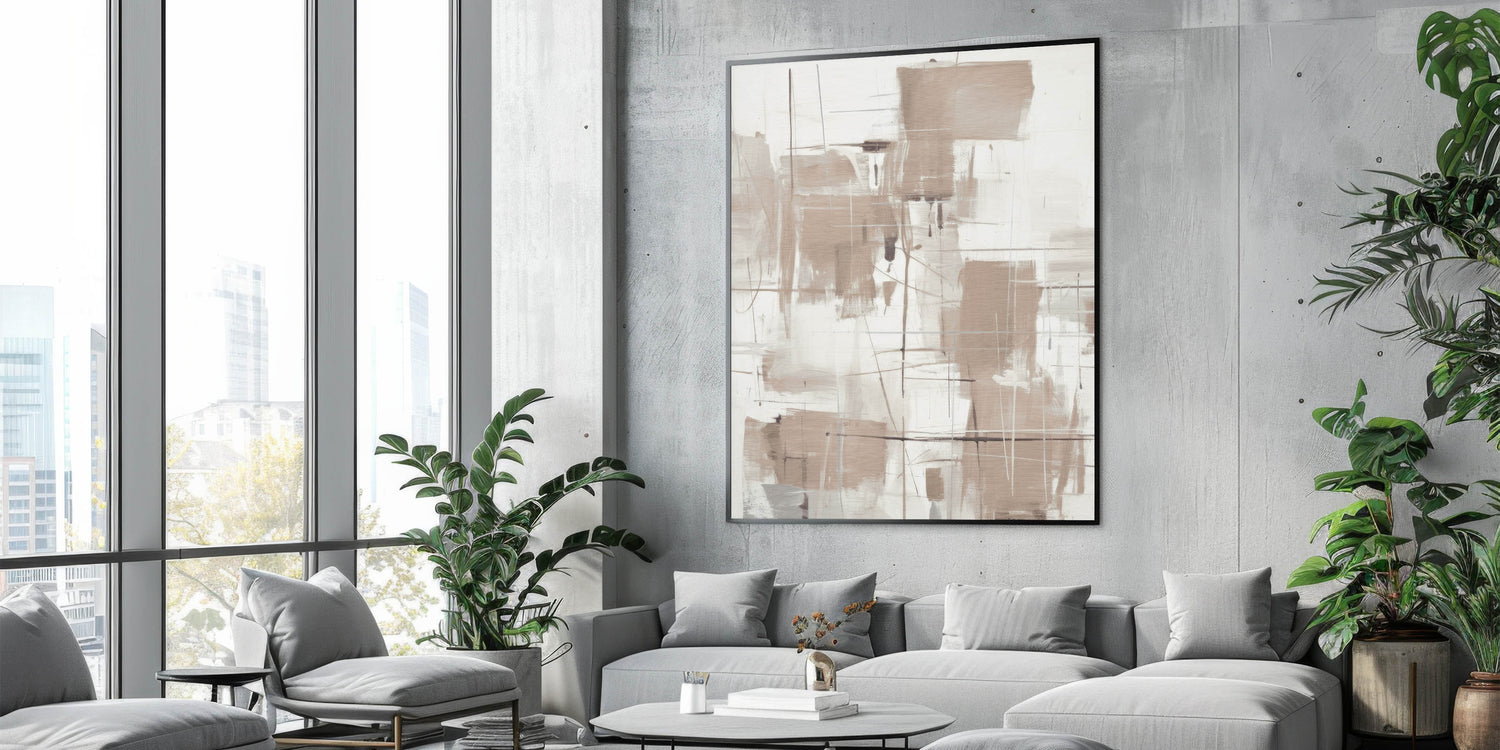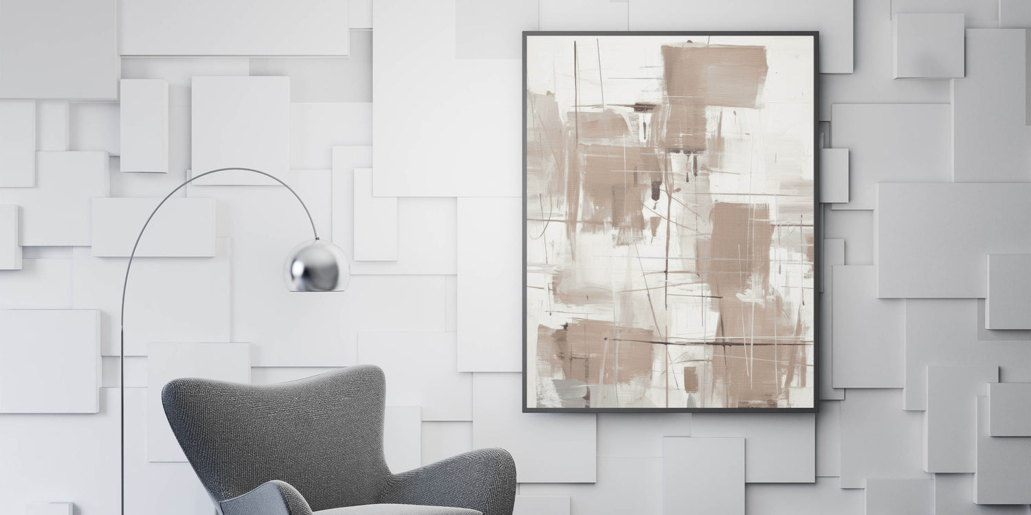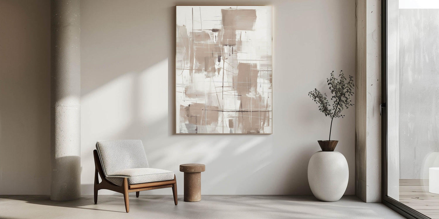 Modern Abstract Wall Art - Neutral Beige Minimalist Geometric Canvas
