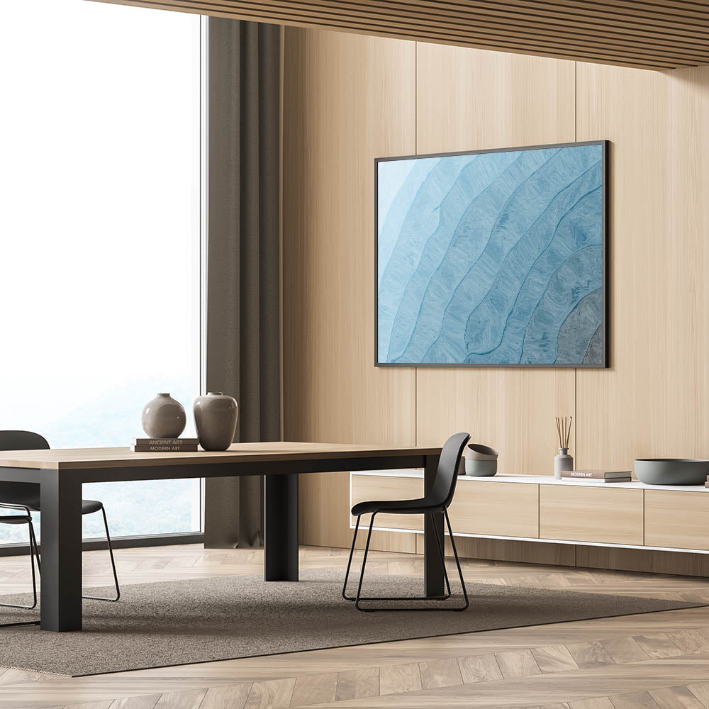 Create a tranquil atmosphere in your space with this Soft Blue Abstract Wave Canvas. The artwork features gentle waves of blue that flow seamlessly across the canvas, evoking a sense of calm and serenity. The minimalist design and soothing color palette make it a perfect addition to contemporary and modern interiors. The textured layers add depth and dimension, making this piece a versatile and visually appealing focal point that enhances any room.