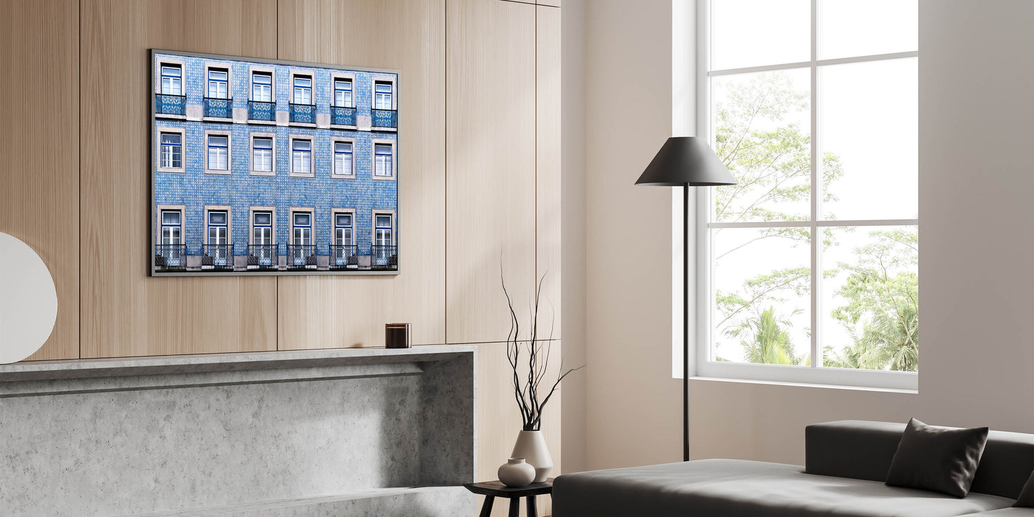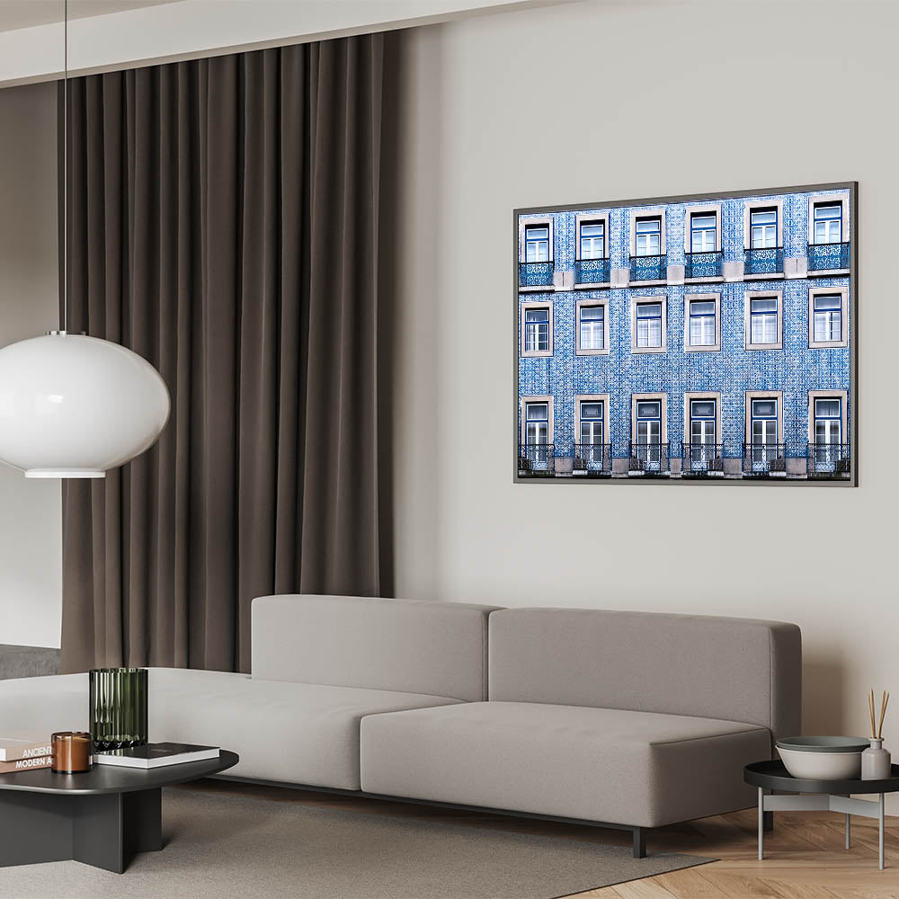 Bring the charm of Lisbon into your space with this stunning wall art, capturing the beauty of the city's iconic tiled buildings. This piece showcases a captivating pattern of blue and white tiles, which are characteristic of Lisbon's architectural beauty. Perfect for adding a touch of Portugal’s rich history to any room, this artwork evokes the timeless allure of the city's streets.