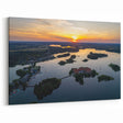 This Trakai Castle print beautifully captures an aerial view of the historic Trakai Island Castle bathed in the golden light of sunset. Nestled on a serene lake and surrounded by lush greenery, this majestic castle is a symbol of Lithuania's rich history and breathtaking natural landscapes. The tranquil waters reflect the vibrant colors of the setting sun, creating a scene of peaceful beauty.