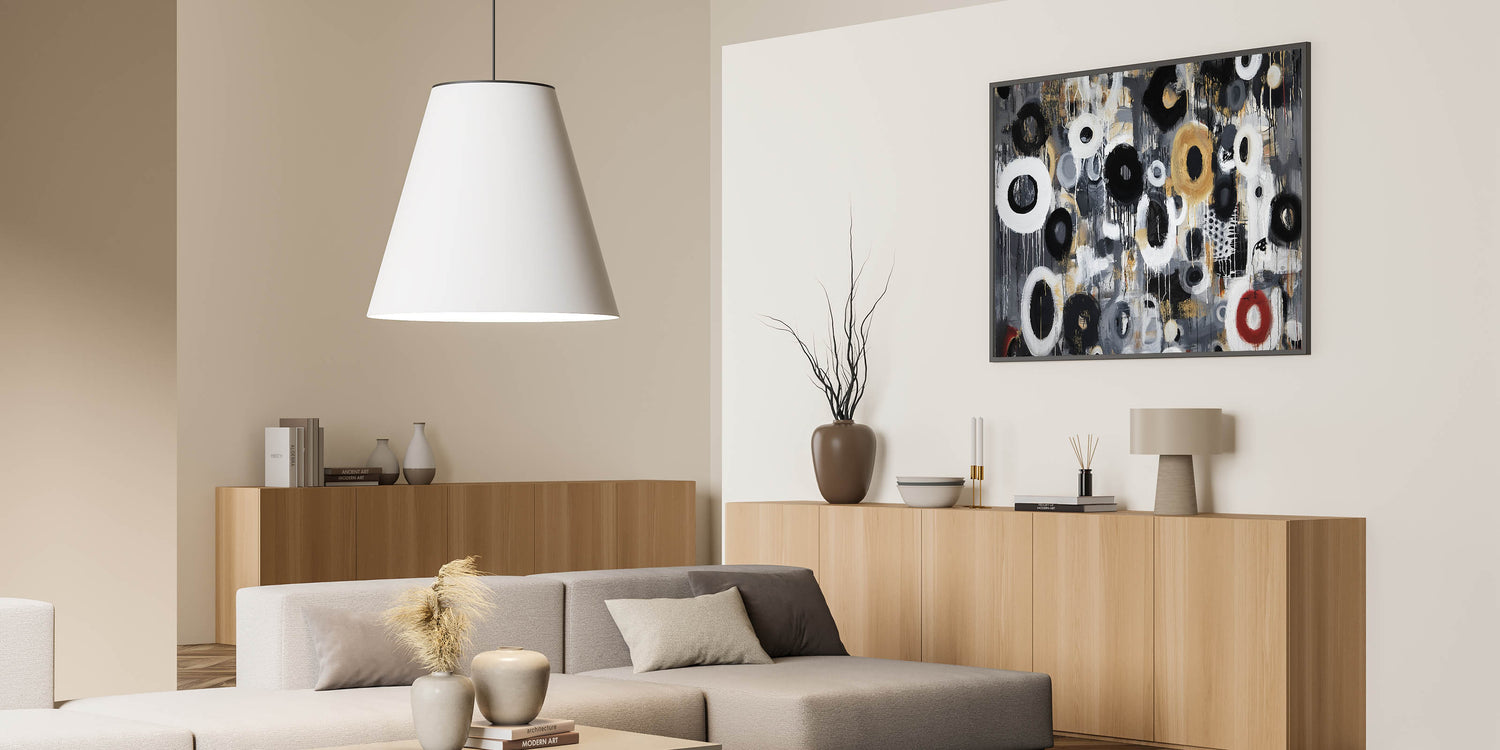 Abstract Circular Living Room Wall Art – Black, Gold & White Canvas