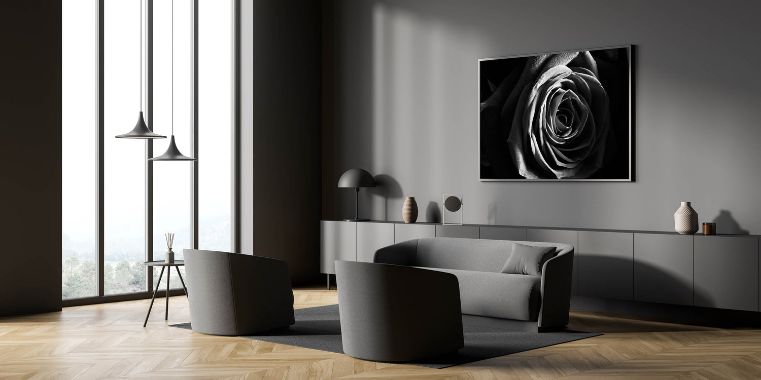 Black & White Rose Wall Art - Modern Monochrome Living Room Décor