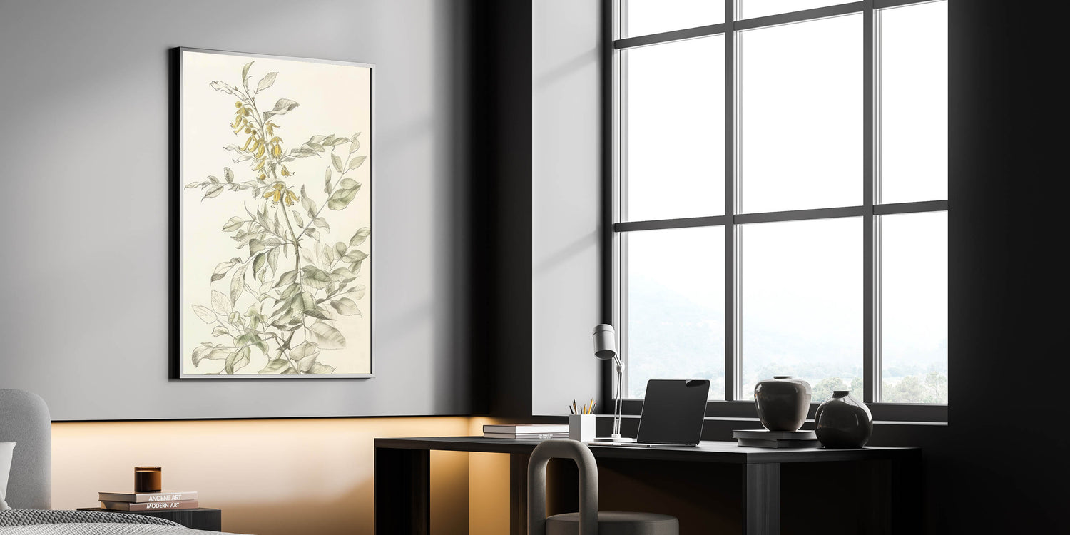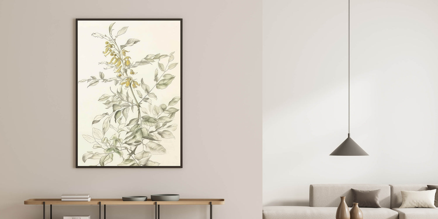 Bring the beauty of nature’s elegance into your home with this botanical sketch wall art. Featuring a delicately drawn floral branch with soft green leaves and yellow blossoms, this modern wall art exudes a sense of refinement and tranquility. A perfect addition to living room wall décor, this piece blends artistry with nature for a sophisticated touch.