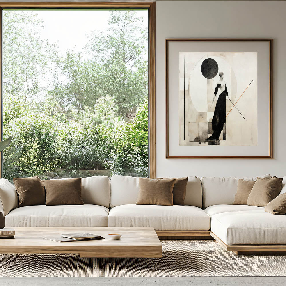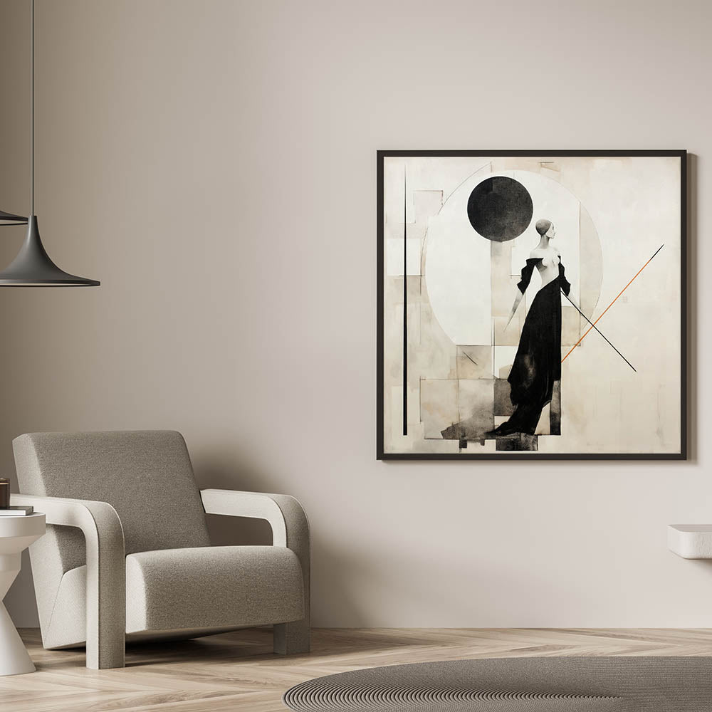 Enhance your space with this modern wall art, an elegant fusion of black, beige, and light gray tones. This living room wall art features a graceful female figure in an abstract composition, exuding sophistication and contemporary charm. Whether displayed as canvas wall art or framed wall art, this piece is perfect for those who appreciate abstract art pieces with a stylish, modern aesthetic.