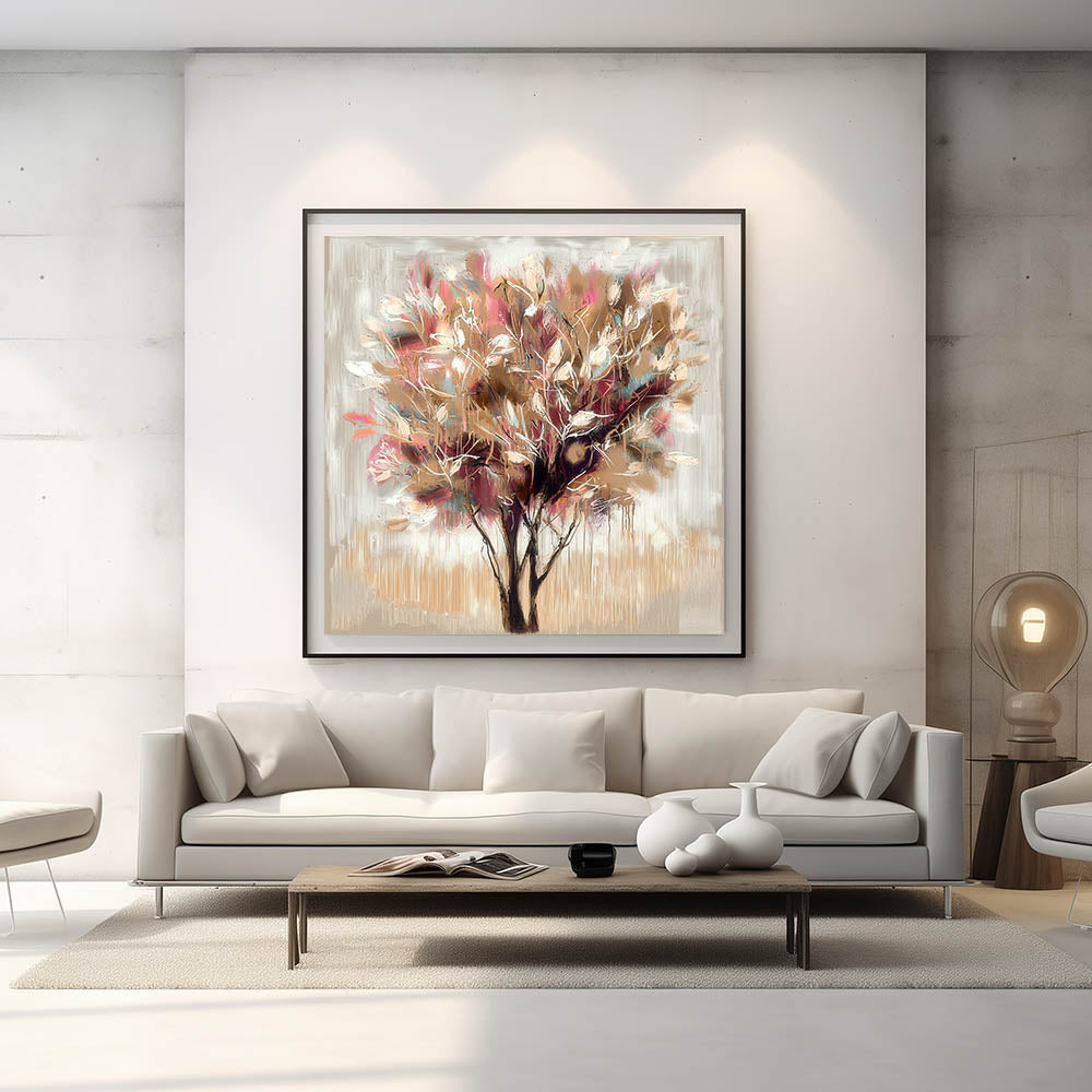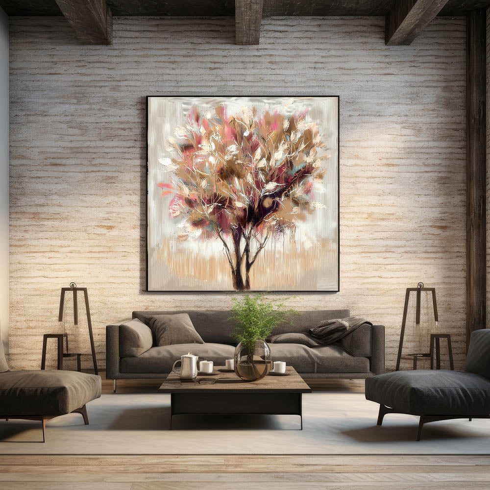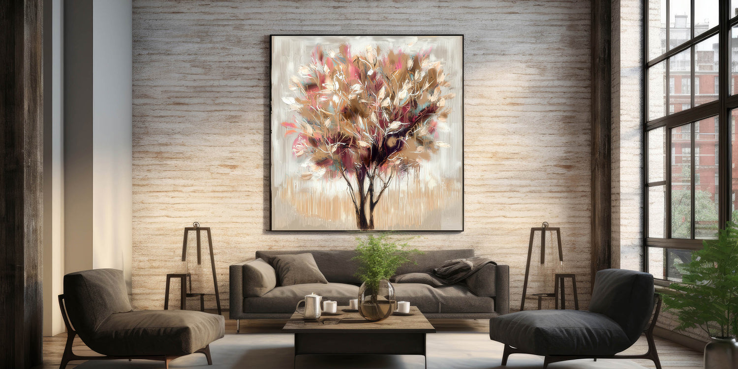 Add a touch of nature’s beauty to your space with this living room wall art, featuring an elegantly stylized tree with warm beige, brown, and burgundy tones. The abstract brushstrokes and delicate details create a refined and sophisticated look, making it the perfect modern wall art piece for a cozy and stylish interior.