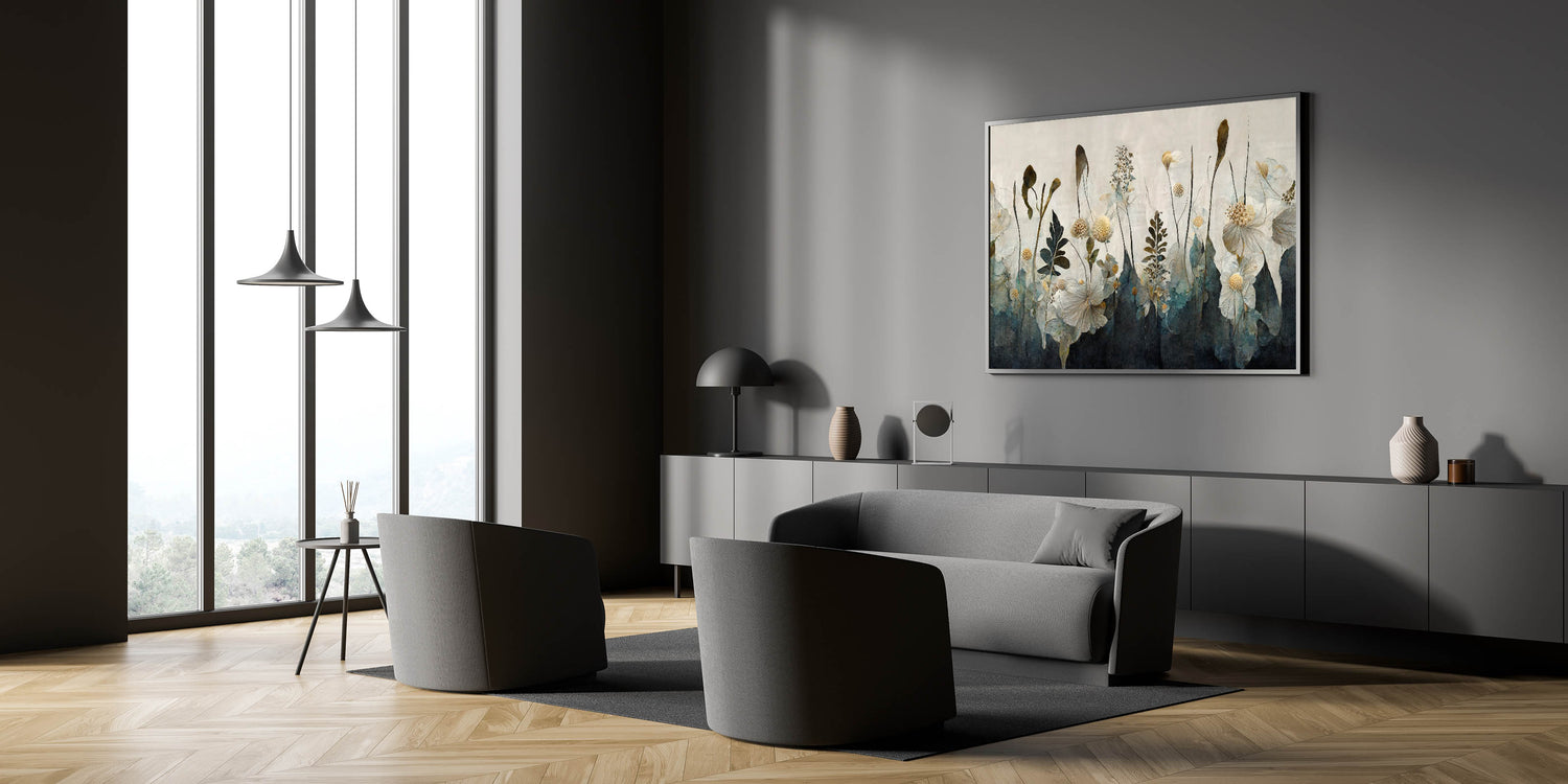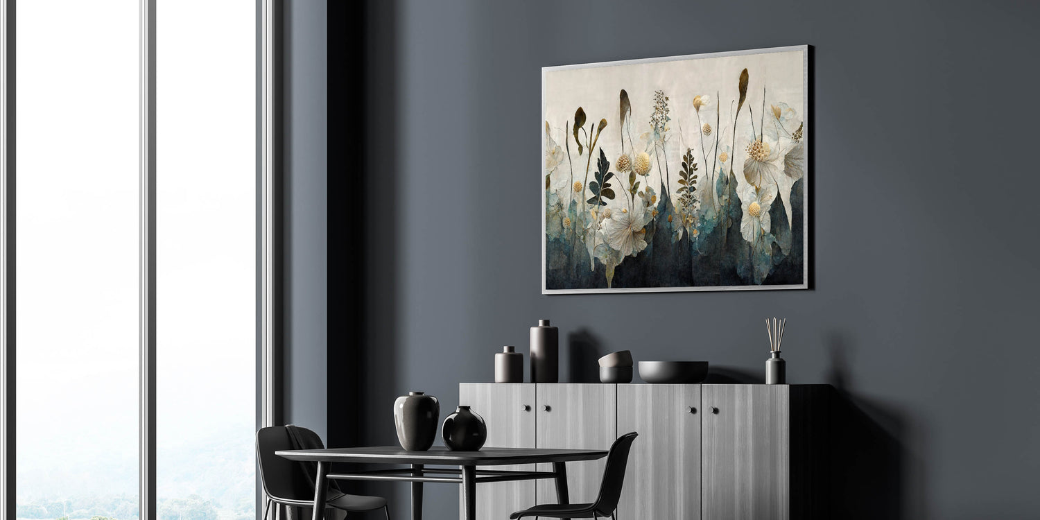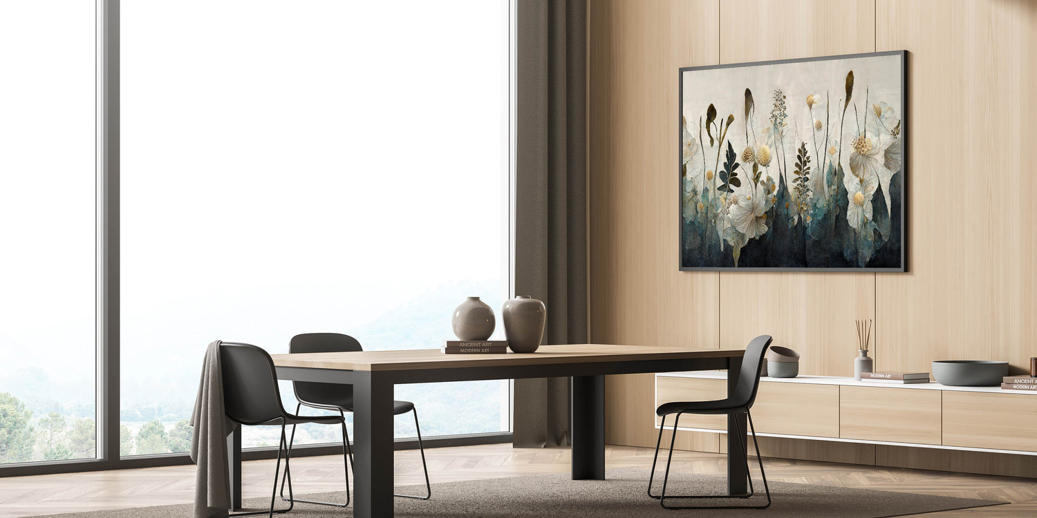 This large canvas art is a timeless representation of botanical beauty and artistic sophistication. Whether framed or printed on acrylic glass, this modern wall art piece will bring harmony and elegance to your home.
