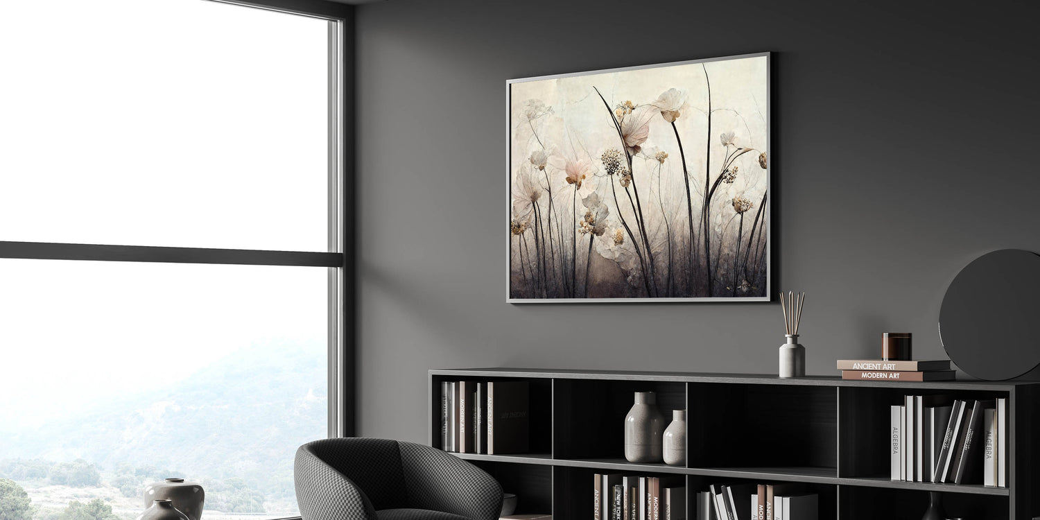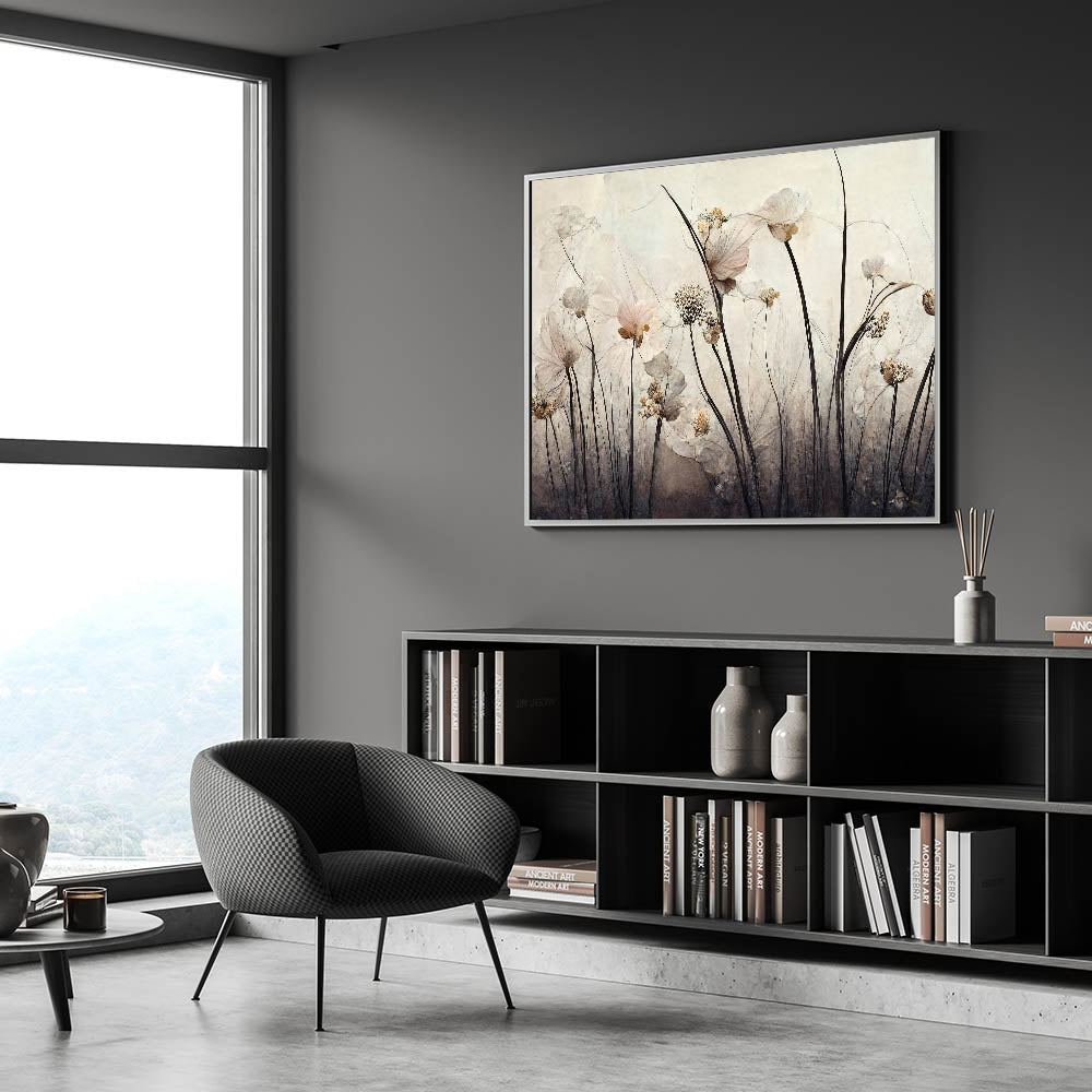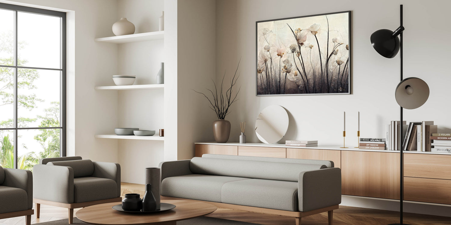 Elegant Floral Living Room Wall Art – Modern Canvas & Framed Print