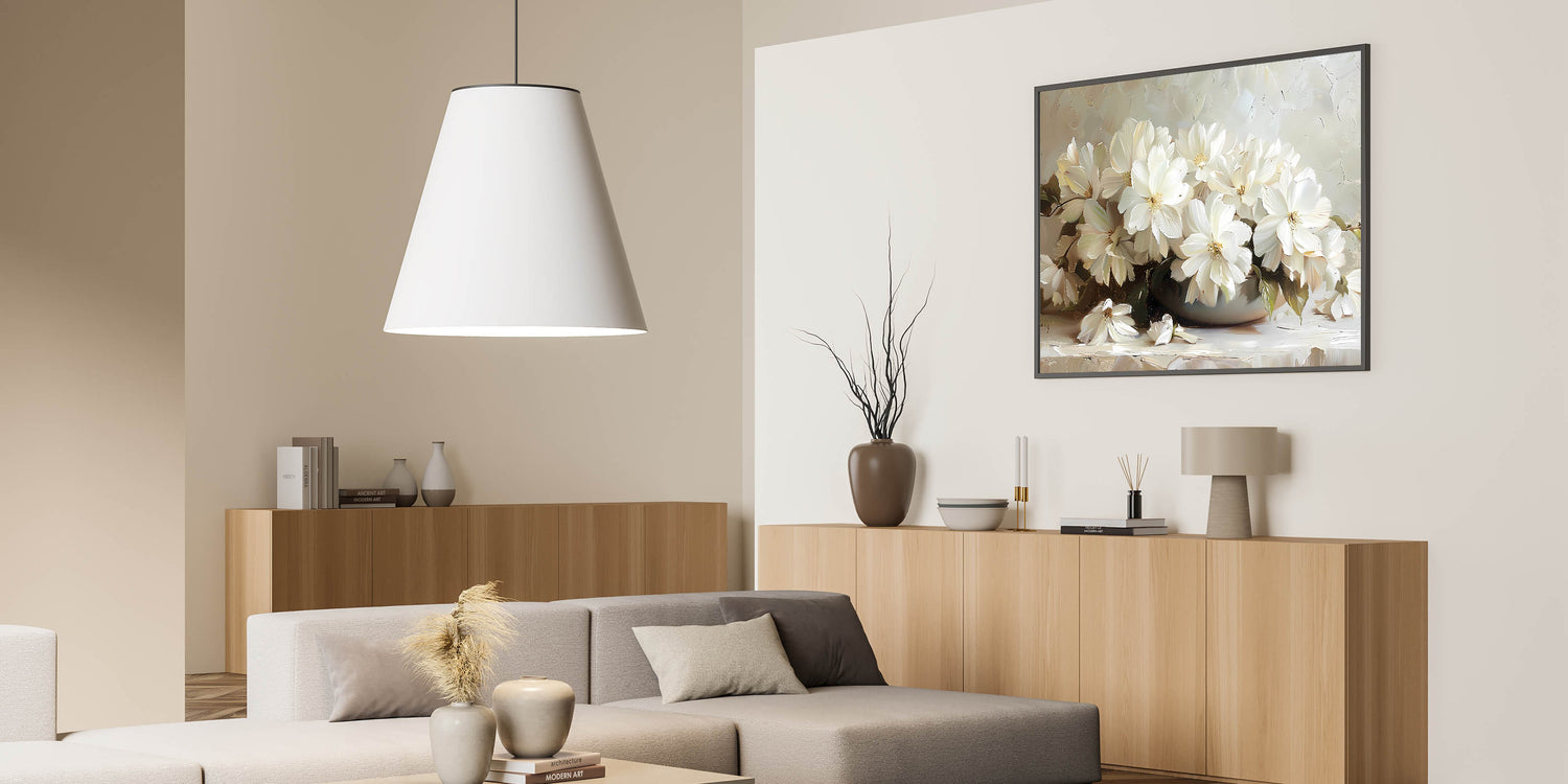 Elegant White Floral Living Room Wall Art - Modern Canvas Print