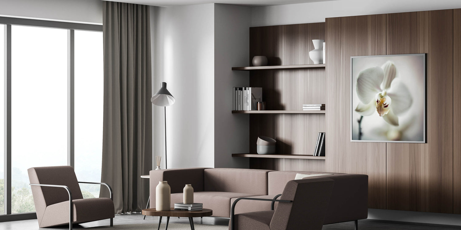 - Soft, Elegant Colors – Featuring a white orchid on a beige background for a calming and sophisticated effect.