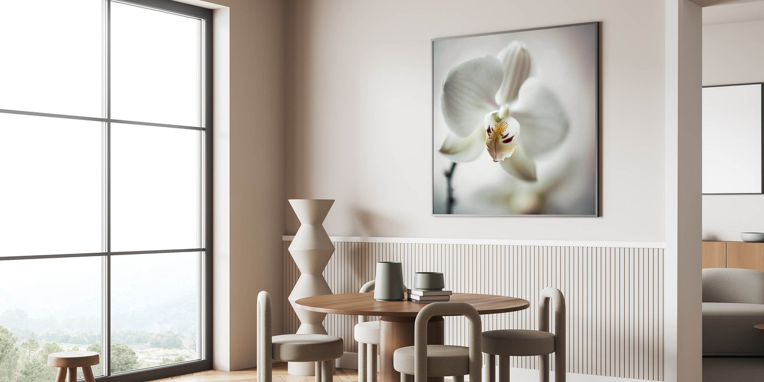 This large wall art is an excellent choice for homeowners looking to enhance their space with contemporary art prints. Whether you're creating a minimalist, botanical, or nature-inspired décor, this white orchid artwork adds timeless charm.