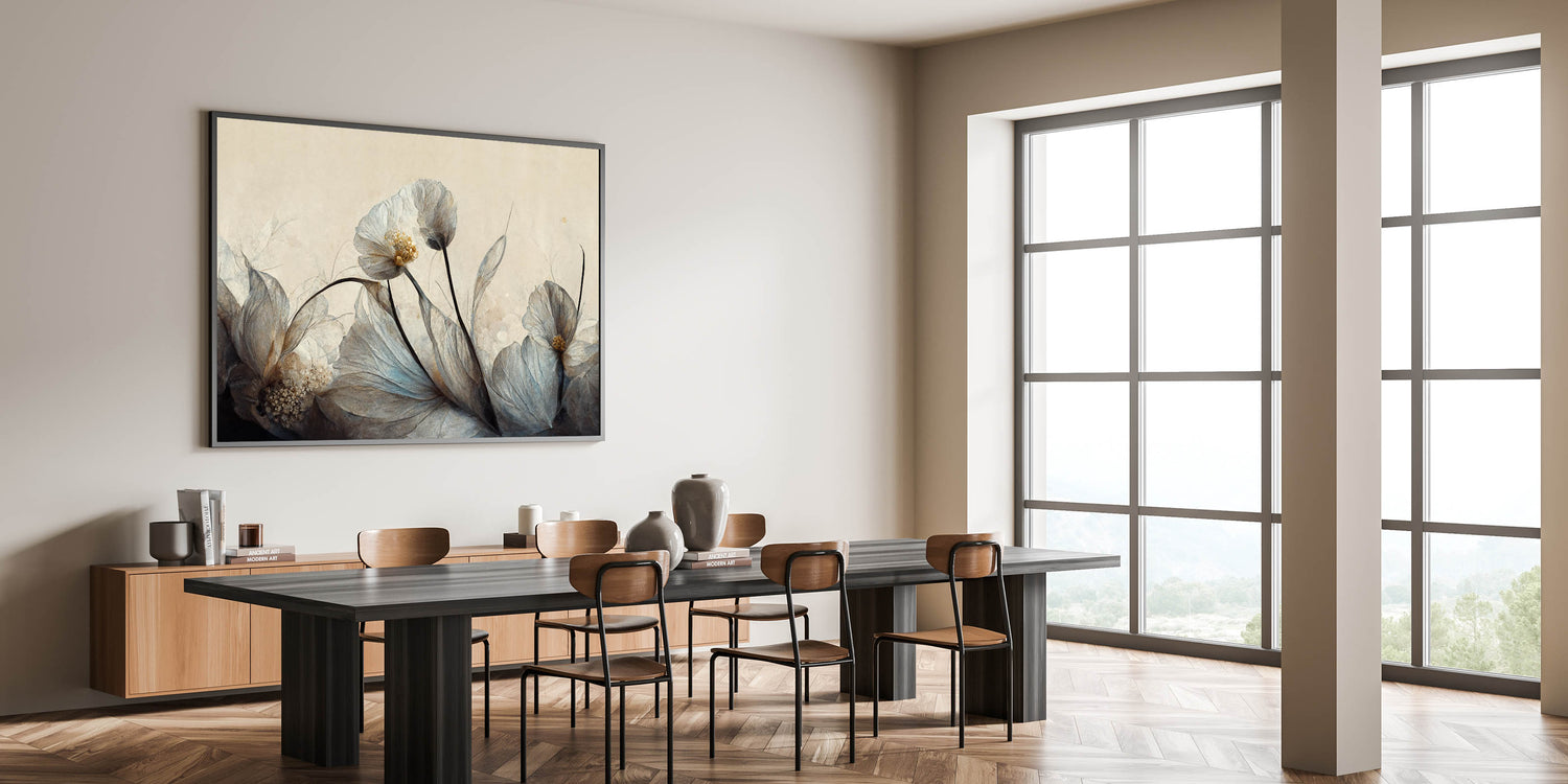 This contemporary art print is an excellent choice for those who appreciate minimalist and nature-inspired décor. Whether displayed as large canvas art or a framed art print, this ethereal floral masterpiece will bring harmony and elegance to any space.
