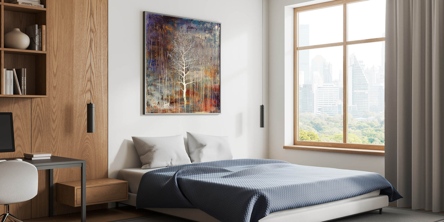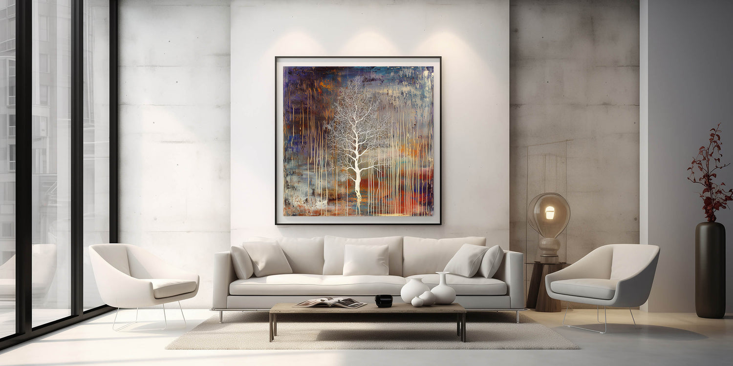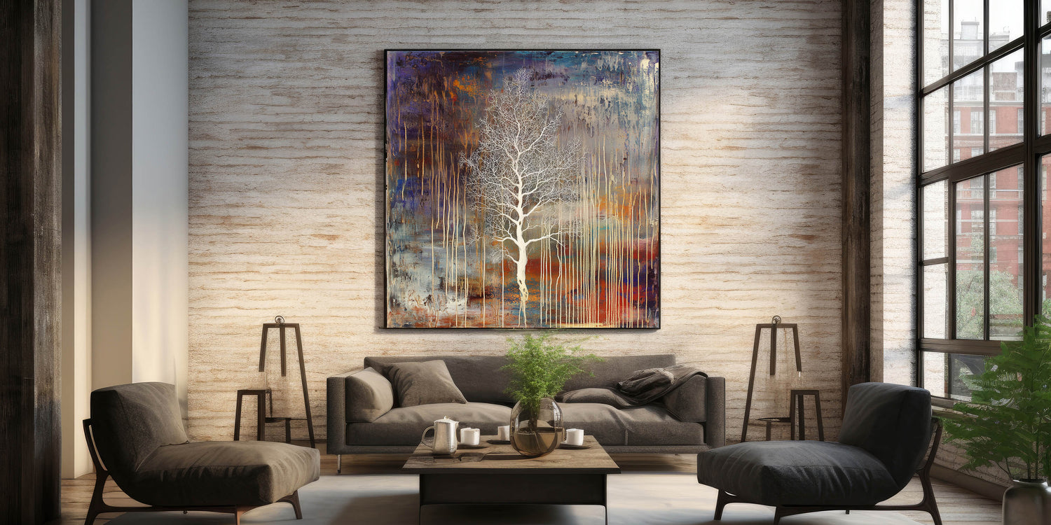 This large canvas art brings a bold yet sophisticated touch to any home or office. Whether you're looking for contemporary art prints or abstract art pieces, this unique tree painting will elevate your décor with its striking blend of colors and textures.