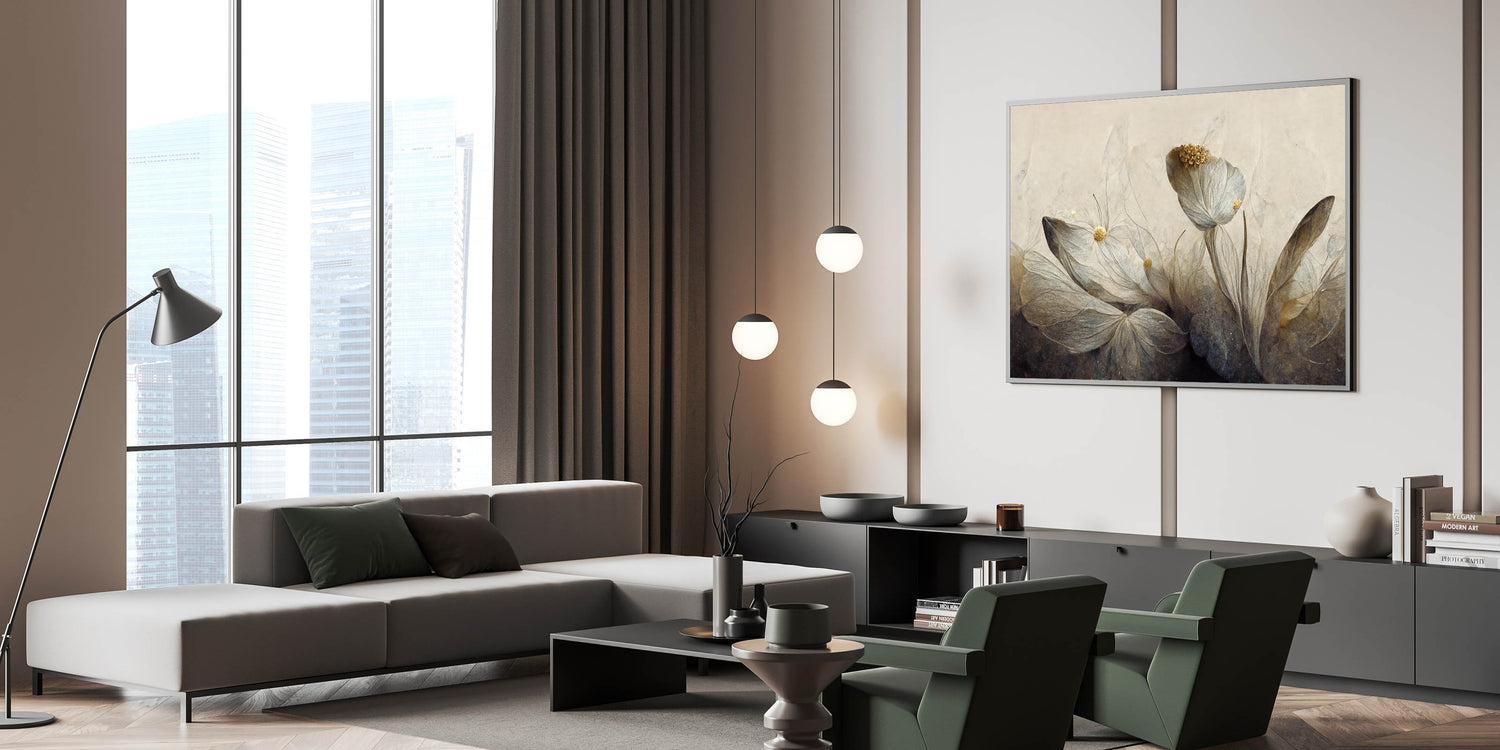 This contemporary art print beautifully blends floral grace with modern design, creating a stunning living room wall art decor statement. Whether featured as a large wall art piece or a framed accent, this design exudes a sense of tranquility and artistic refinement.